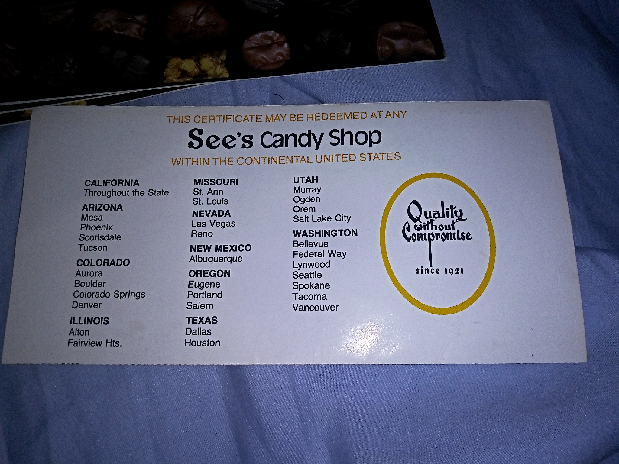Re: Vintage See's Candy Gift Certificates