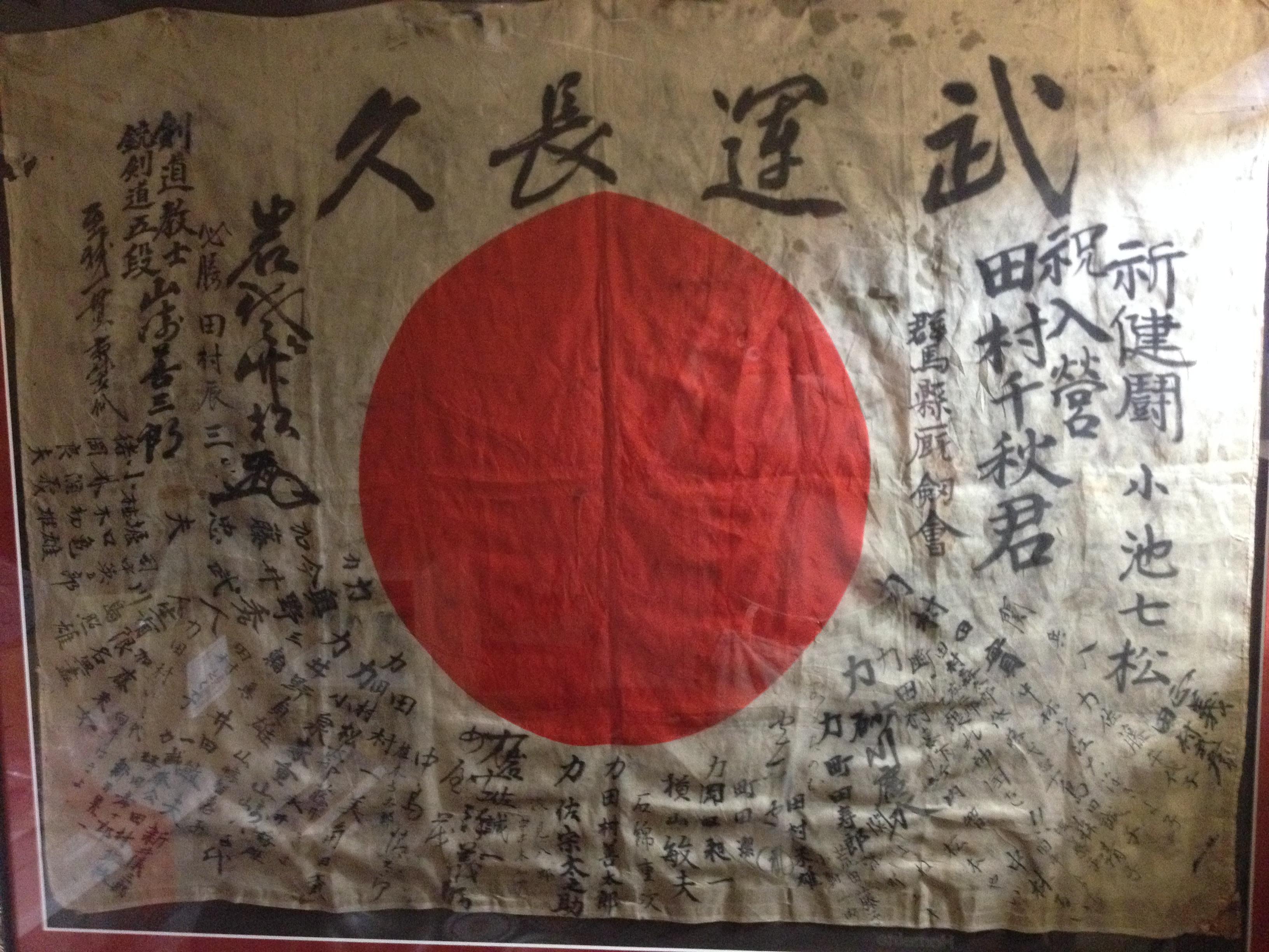 This is a silk that was used by a contestant in the Japanese Olympics in Circa app. 19th century. This silk was used to wrap the contestants stick to be used in the sport of Kendo. It is in good condition for the age it is and framed in museum quality frameing. The silk is app. 37 inches X 27 inches and has hand painted calligraphy that list the name of the contestants Kendo Master and many messages of good wishes and wishes for good luck in the Olympics from many people in his village. Probably there is much more information in the writeings , but unfortunately I don't know Japanese. What information I have here is info from a Japanese lady in Orlando, Florida who saw the silk and I would like to know another person who could read it and tell me more of what it says.