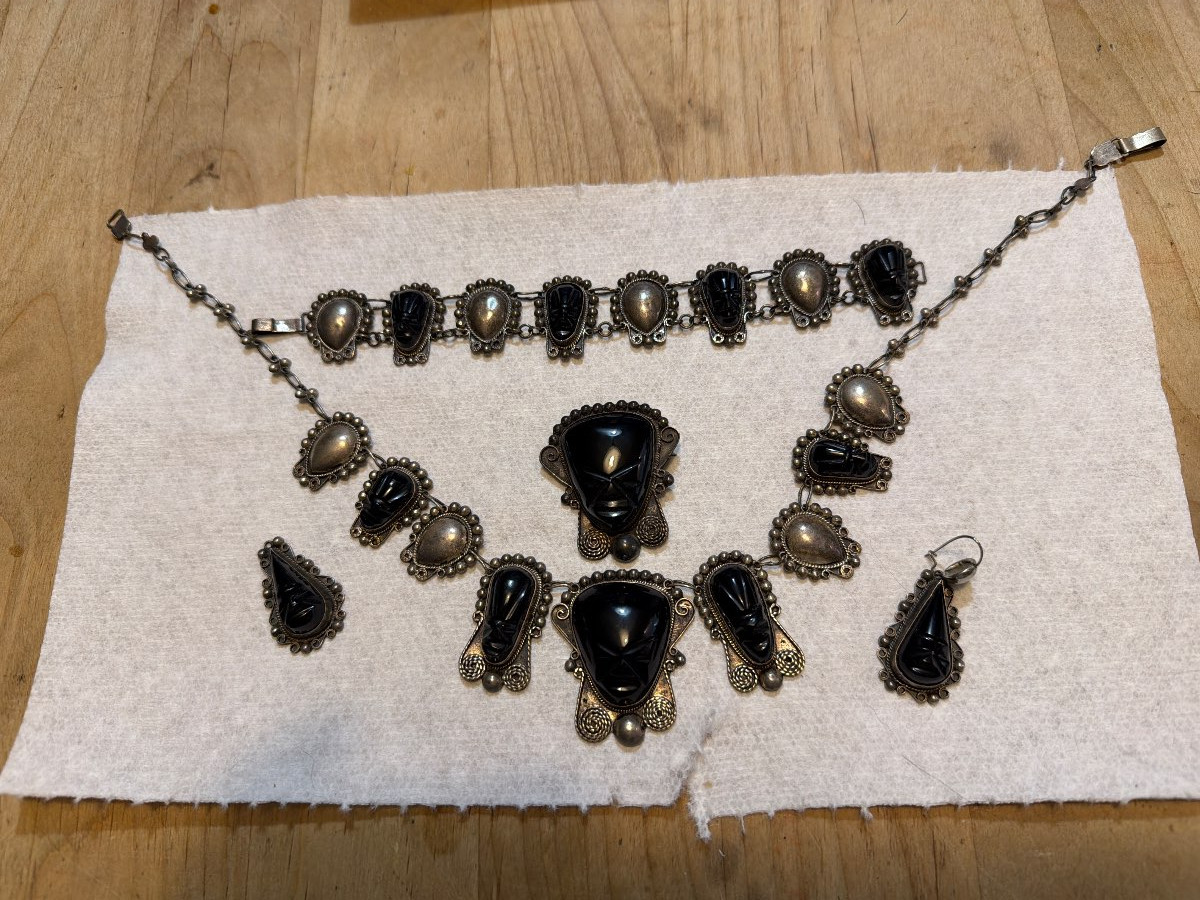 AI Appraisal: Vintage Silver and Onyx Jewelry Set