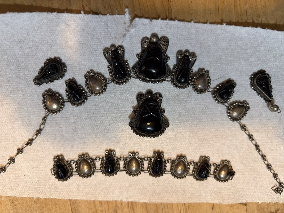 Vintage Silver and Onyx Jewelry Set