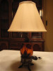 Some scratches, stains, silk? lampshade has damage and is yellowing