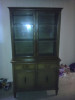 Vintage set, beautiful, great used condition white and yellow with floral design, full size headboard & footboard, 2 dressers, mirror, desk and leather seat chair, lighted hutch, night stand