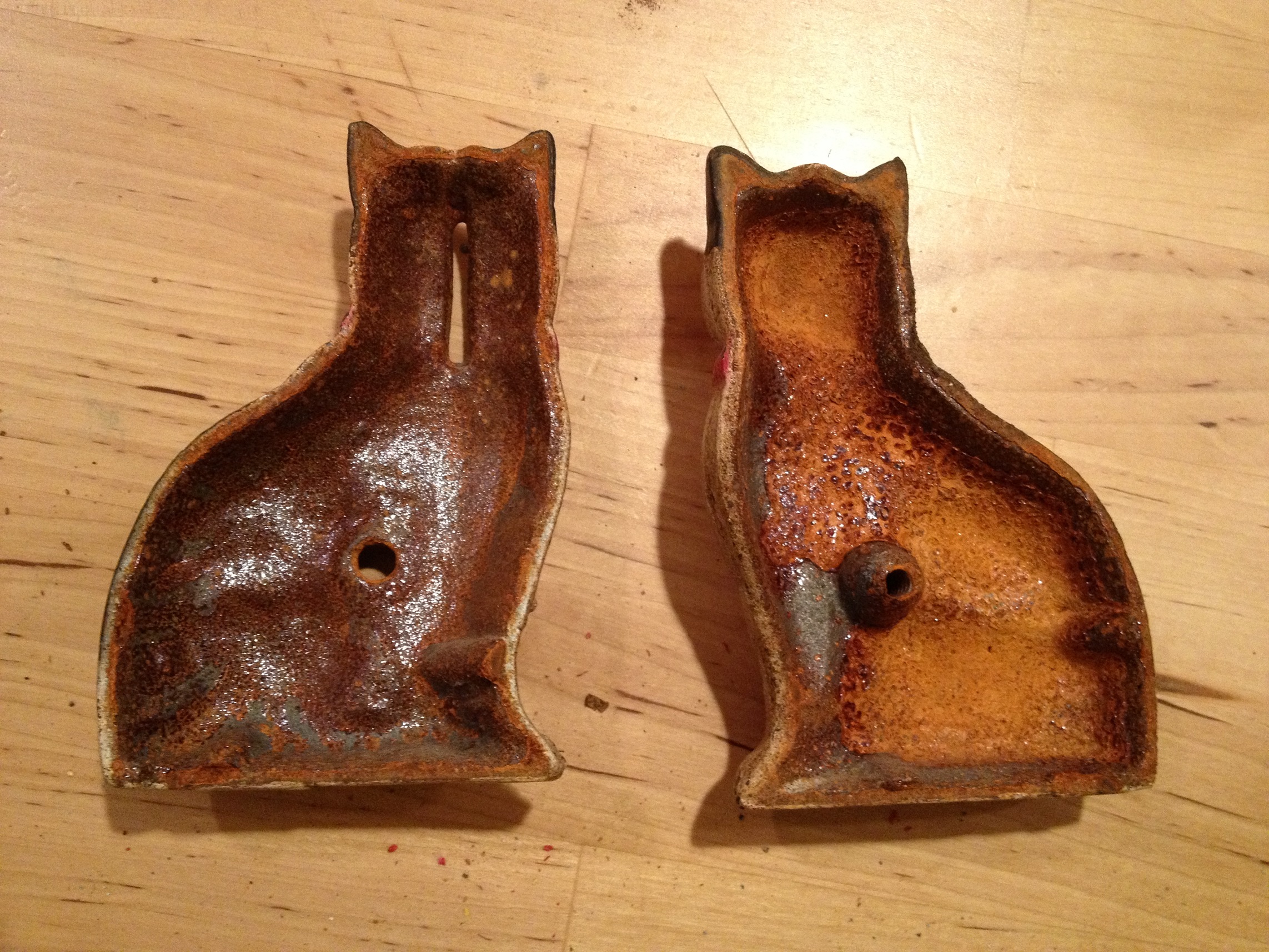 These appear to be reproductions based on the silvering of the interiors (genuine vintage cast is near black, newer is more silver), roughness of the exteriors and use of colors. Probably worth about $30-50 each.