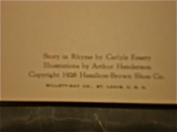 Written by Carlyle Emery; Illutrations by Arthur Henderson; and Copyright in 1926 by Hamilton-Brown ShoeCo.