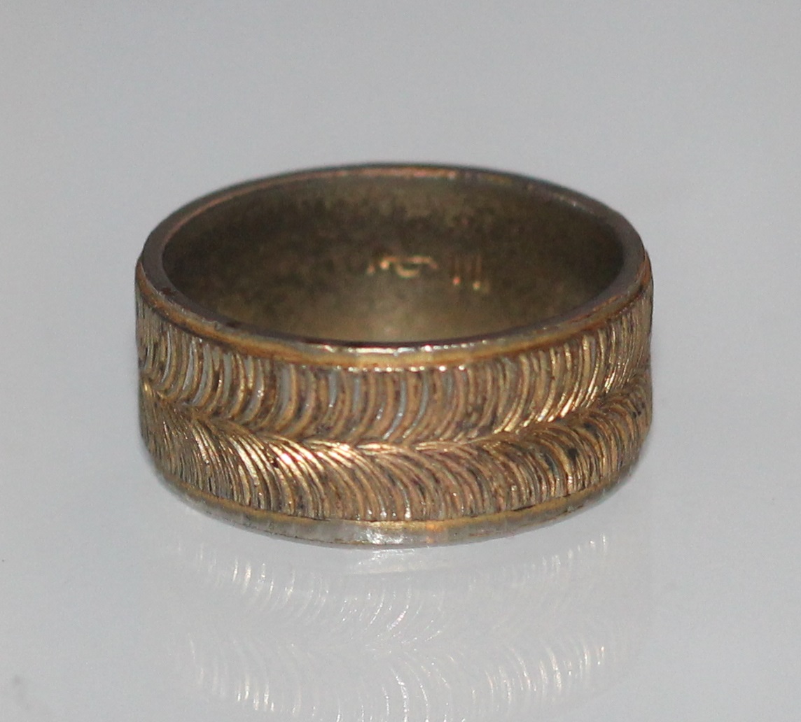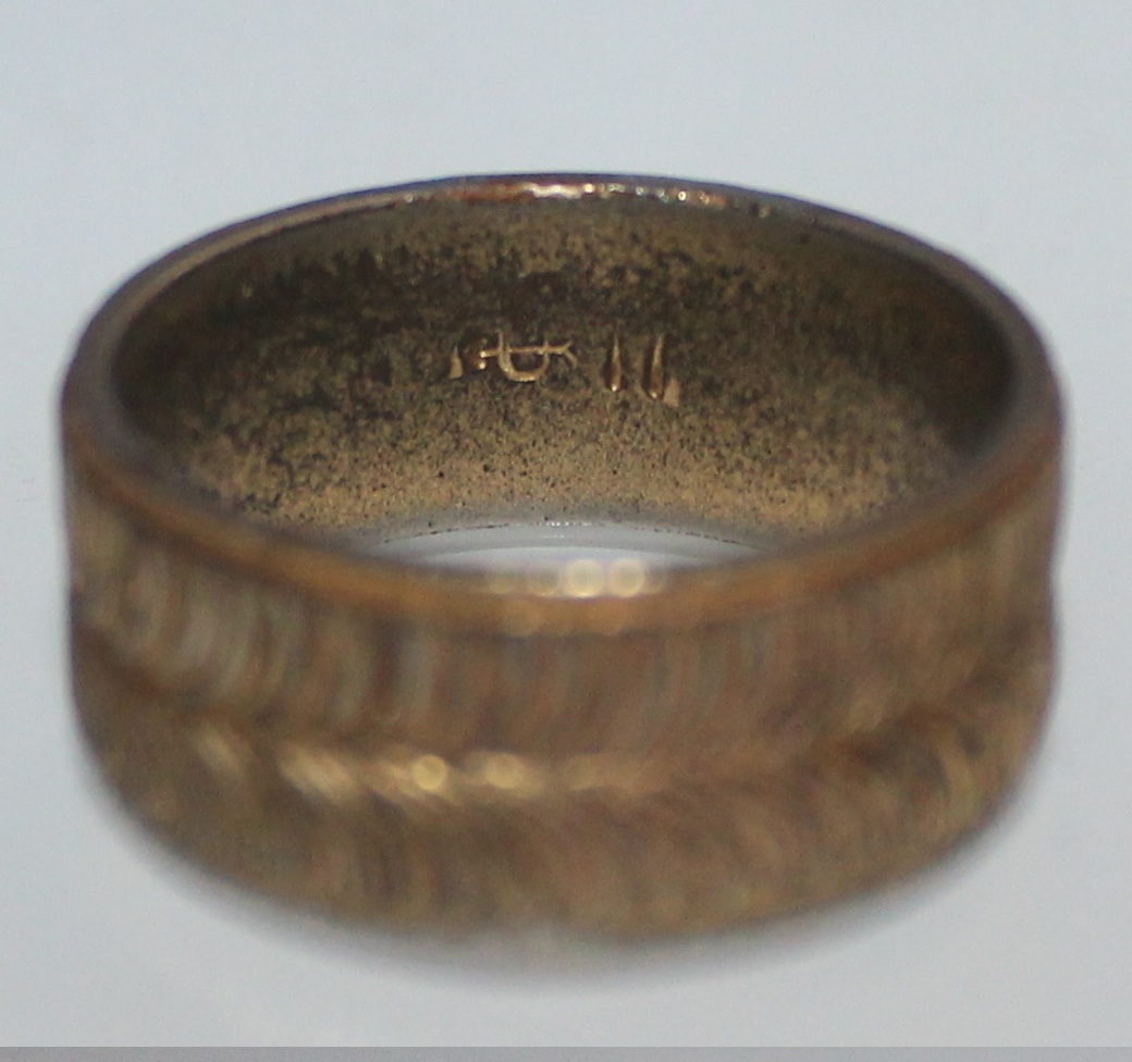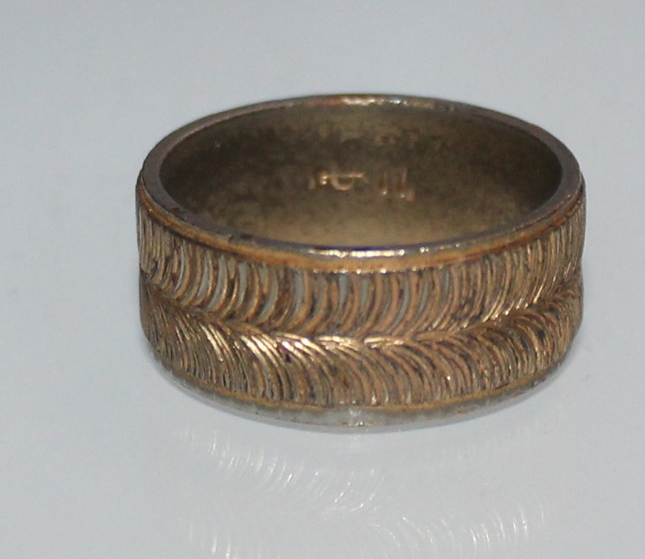 To my knowledge this is a Men's size 11 gold plated Uncas Manufacturing Company according to the etching on the inside of the ring which is a large U with a left pointing arrow through it followed by the number 11.