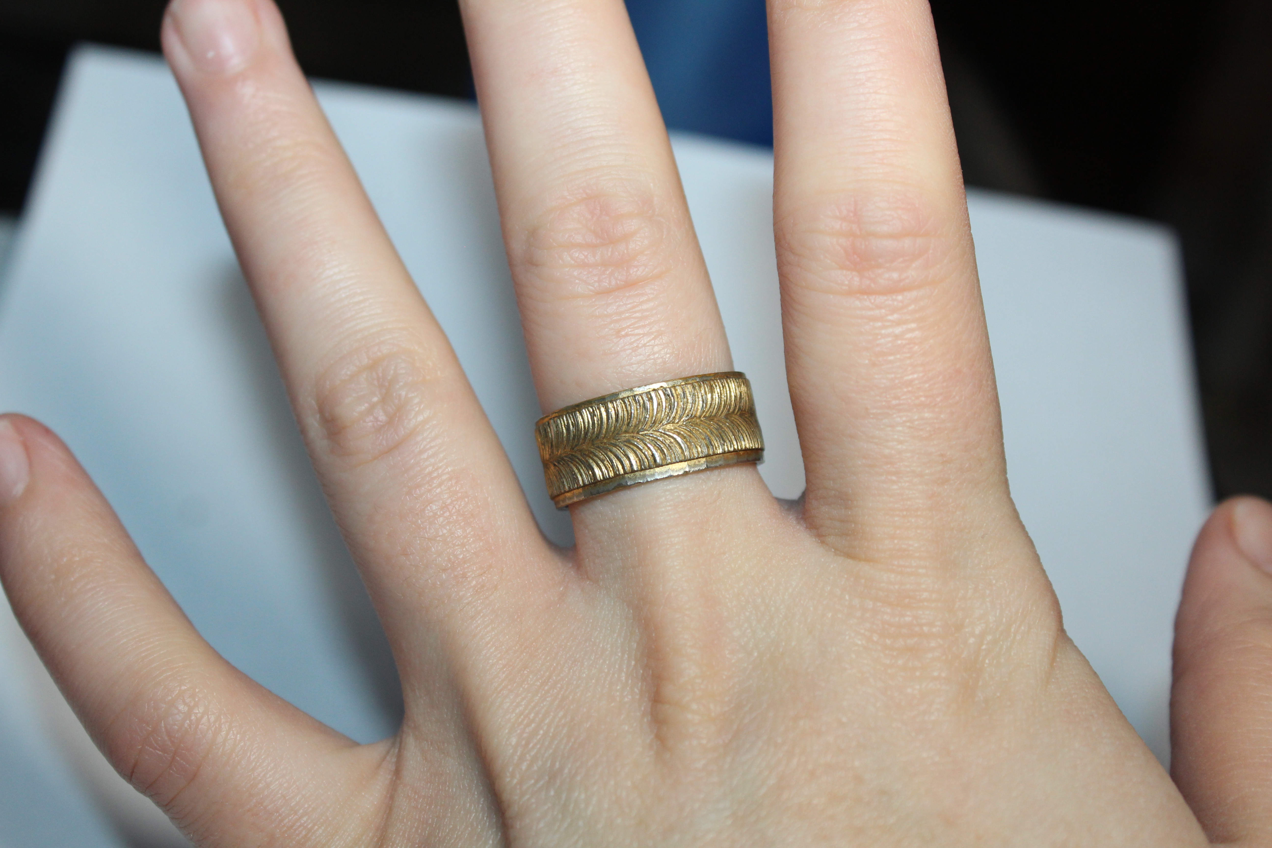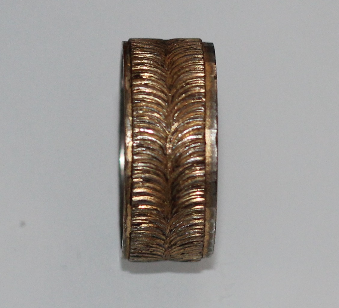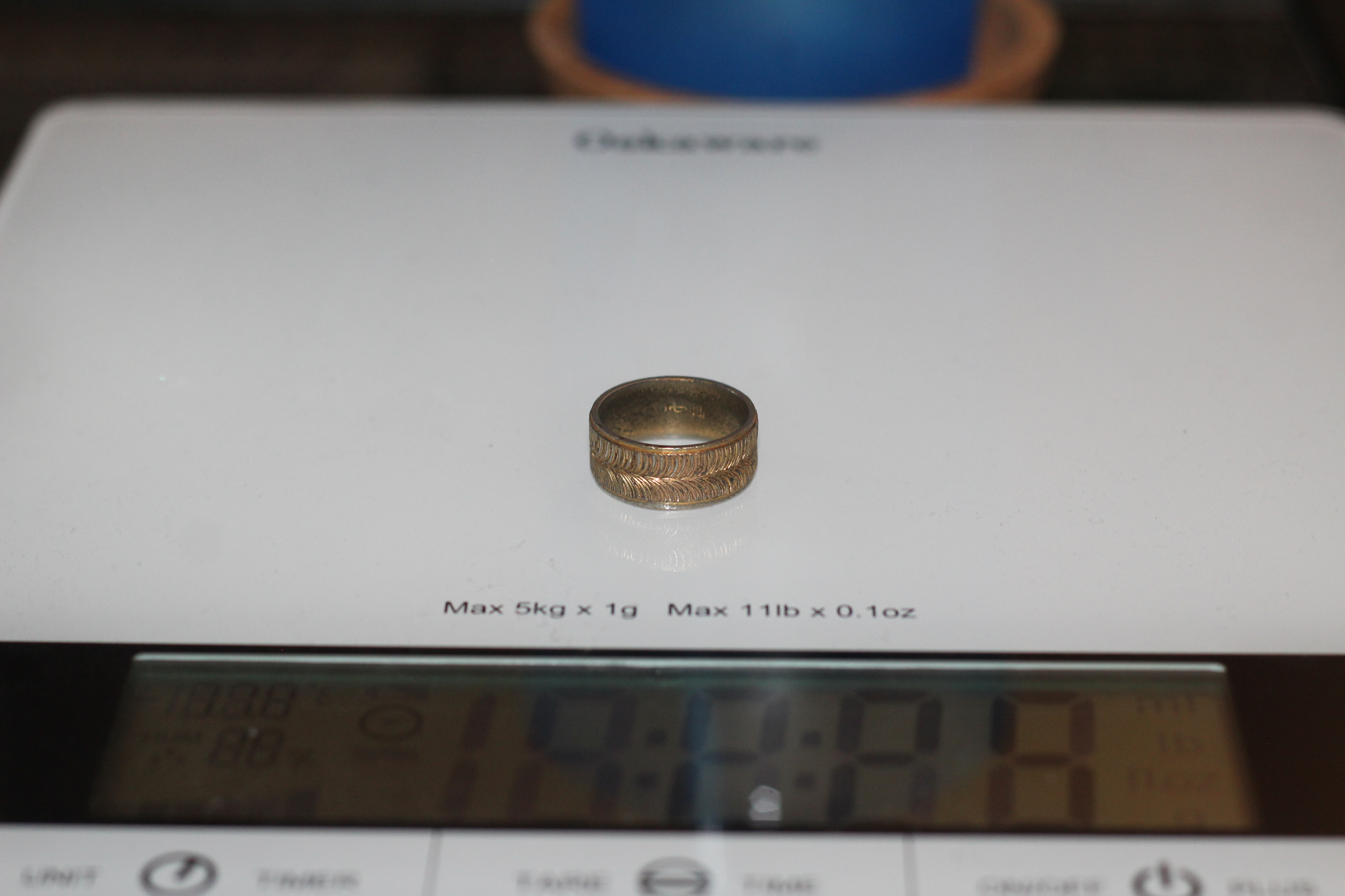 To my knowledge this is a Men's size 11 gold plated Uncas Manufacturing Company according to the etching on the inside of the ring which is a large U with a left pointing arrow through it followed by the number 11.