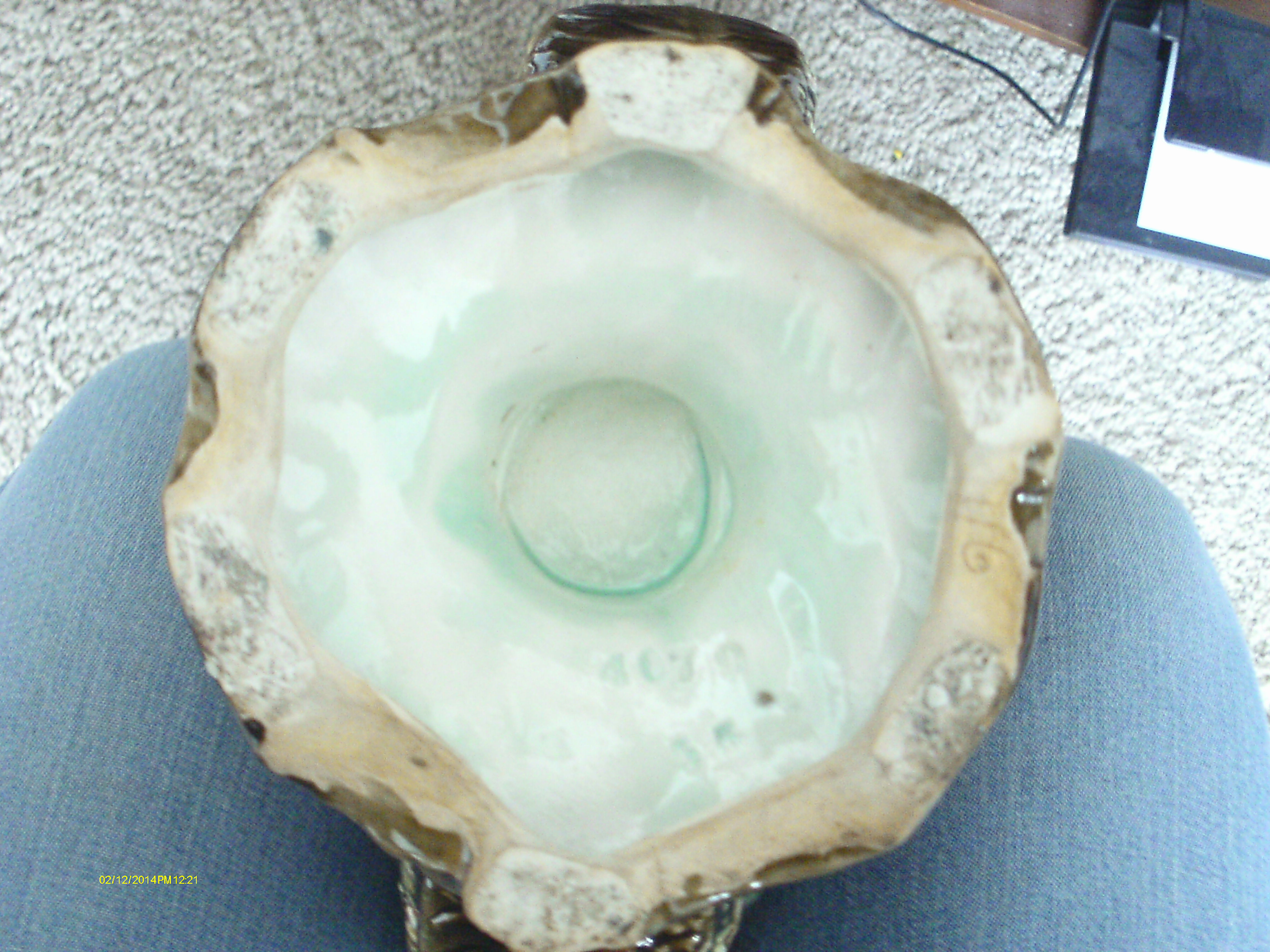 This is a vase (with a chip out of one of the handles) that my parents found 40 years ago behind a wall in the house they bought. It is approximately 15" tall from top of handles to base. We have no idea who made it,if it has any value or if it just held sentimental value for whoever put it behind the wall. There are only number markings on base--4679 with what appears to be 55 below them. Also 116 written in pen or pencil on base. My sister & I have probably looked at hundreds of vases on line but without knowing it's origins it was pretty much a waste of time. I've always admired it's beauty and any input would be greatly appreciated.