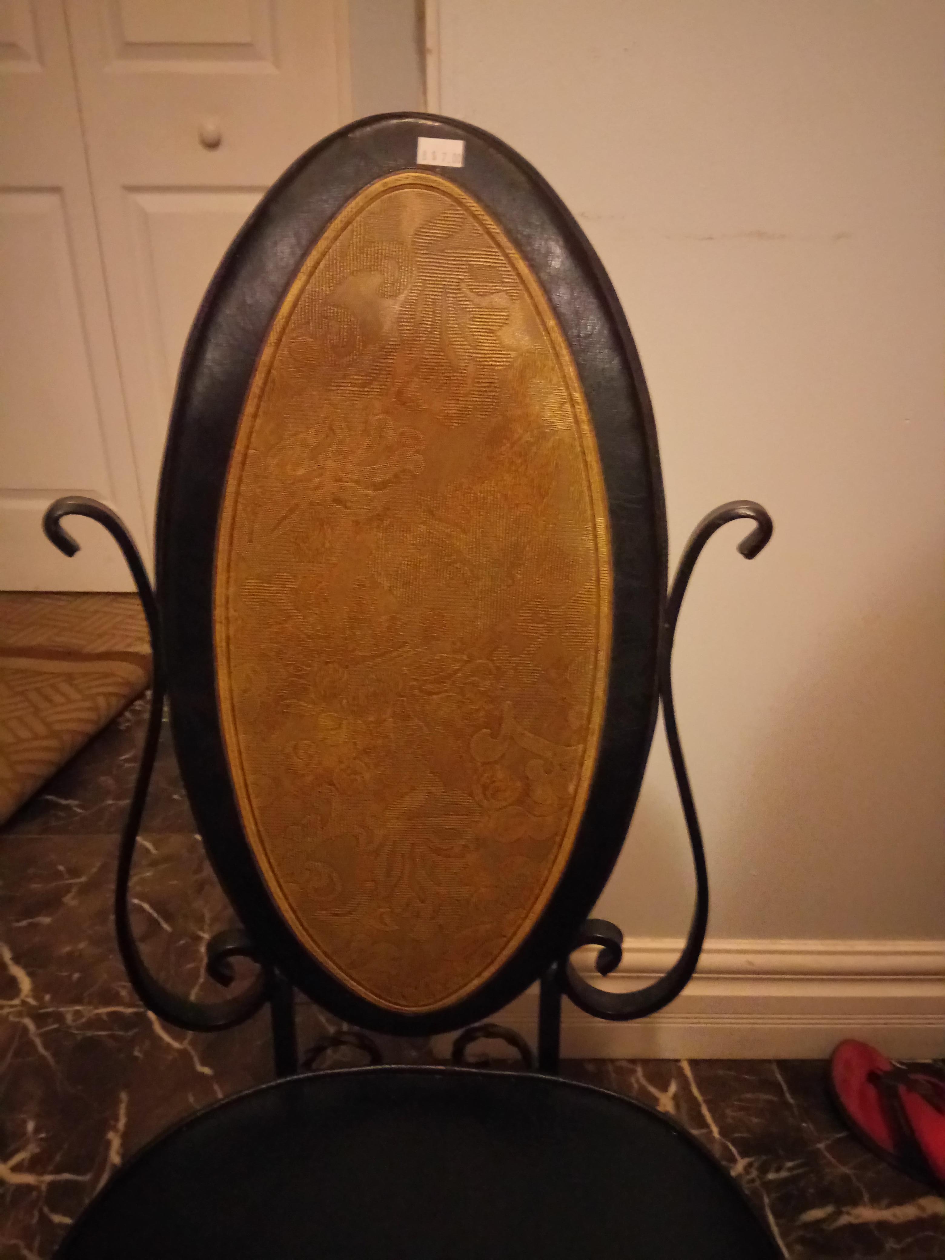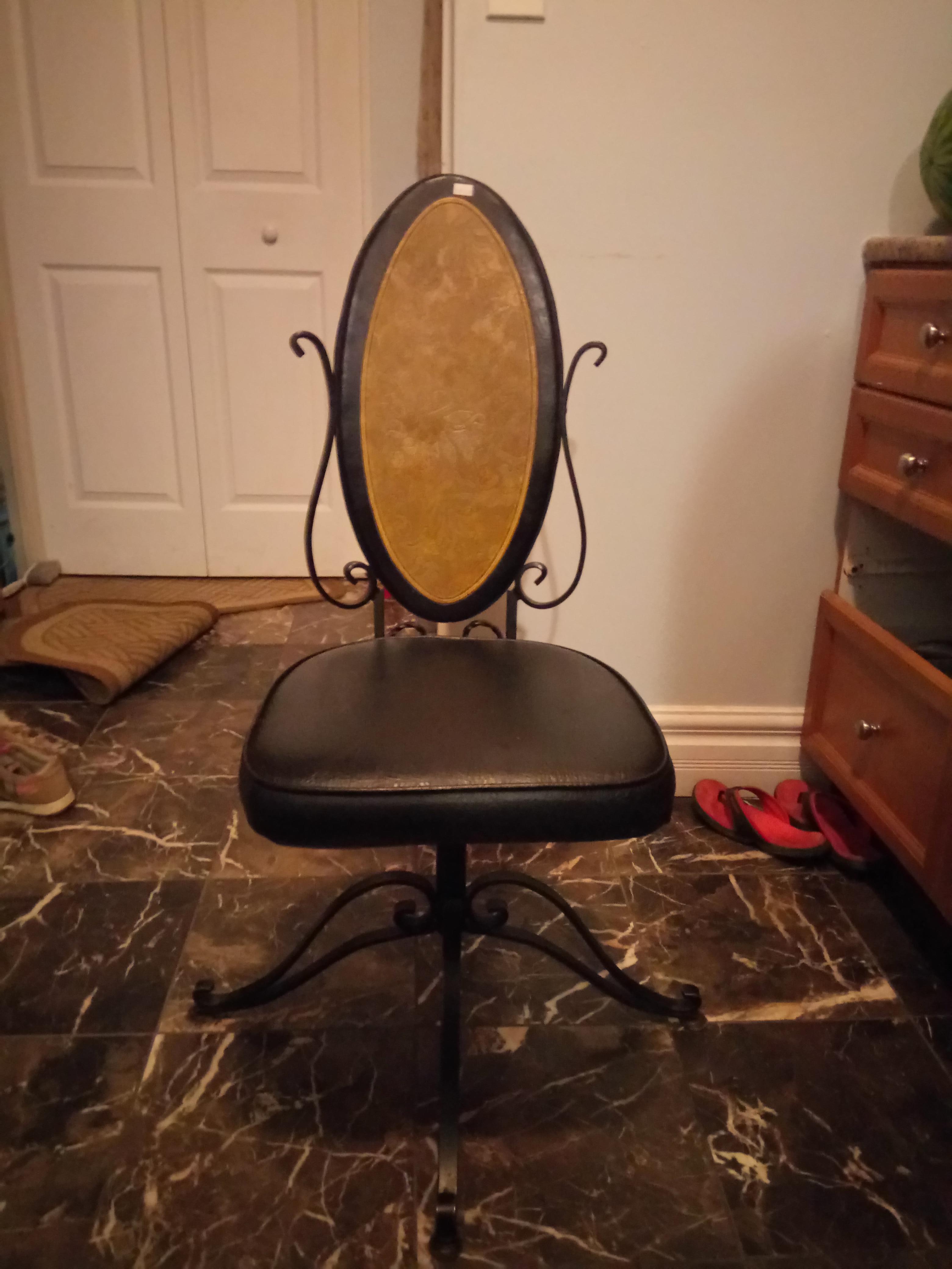 Black metal, swivel, vinyl dining chairs.