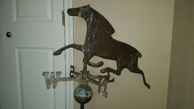 Looking for any info and possible value of this weathervane. Picked it up this afternoon in hewitt texas, woman claims it's from the 1800s. Appears to be made from copper. Any info is appreciated.