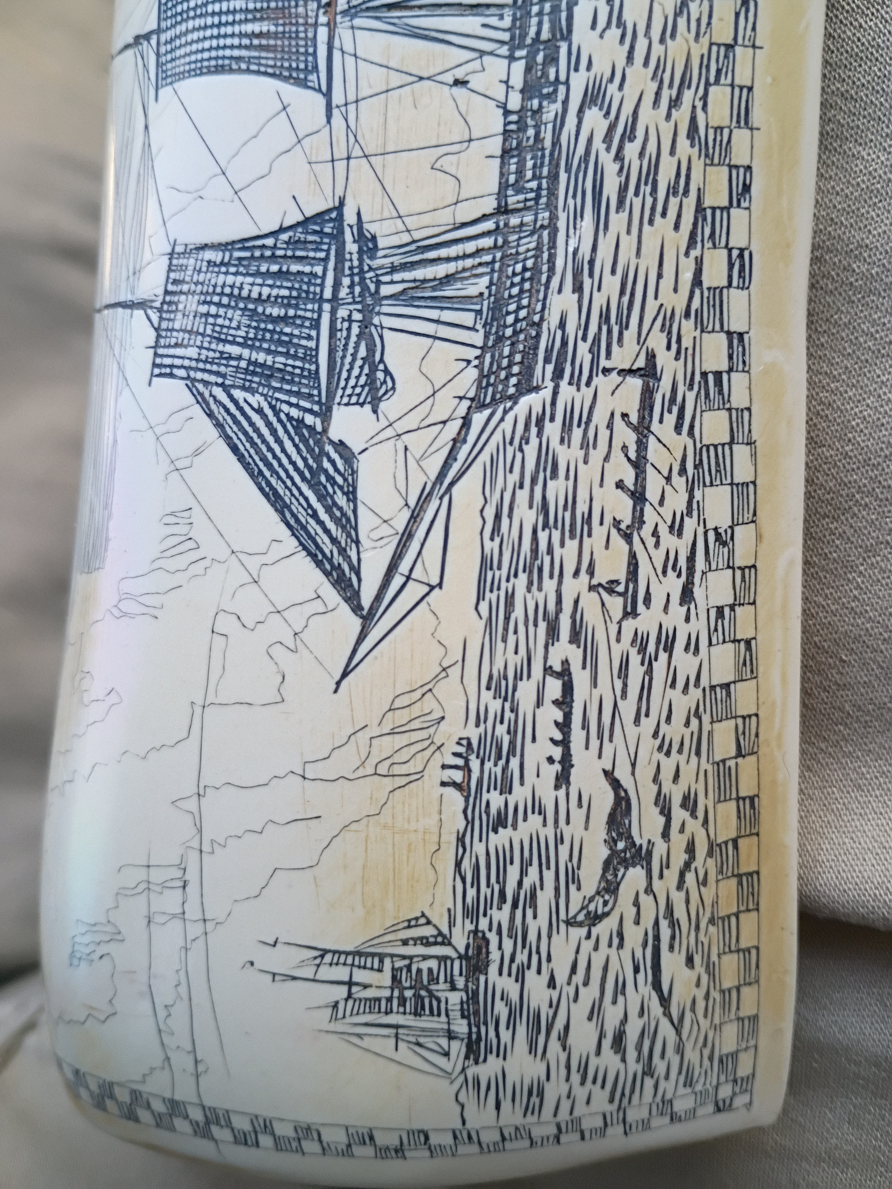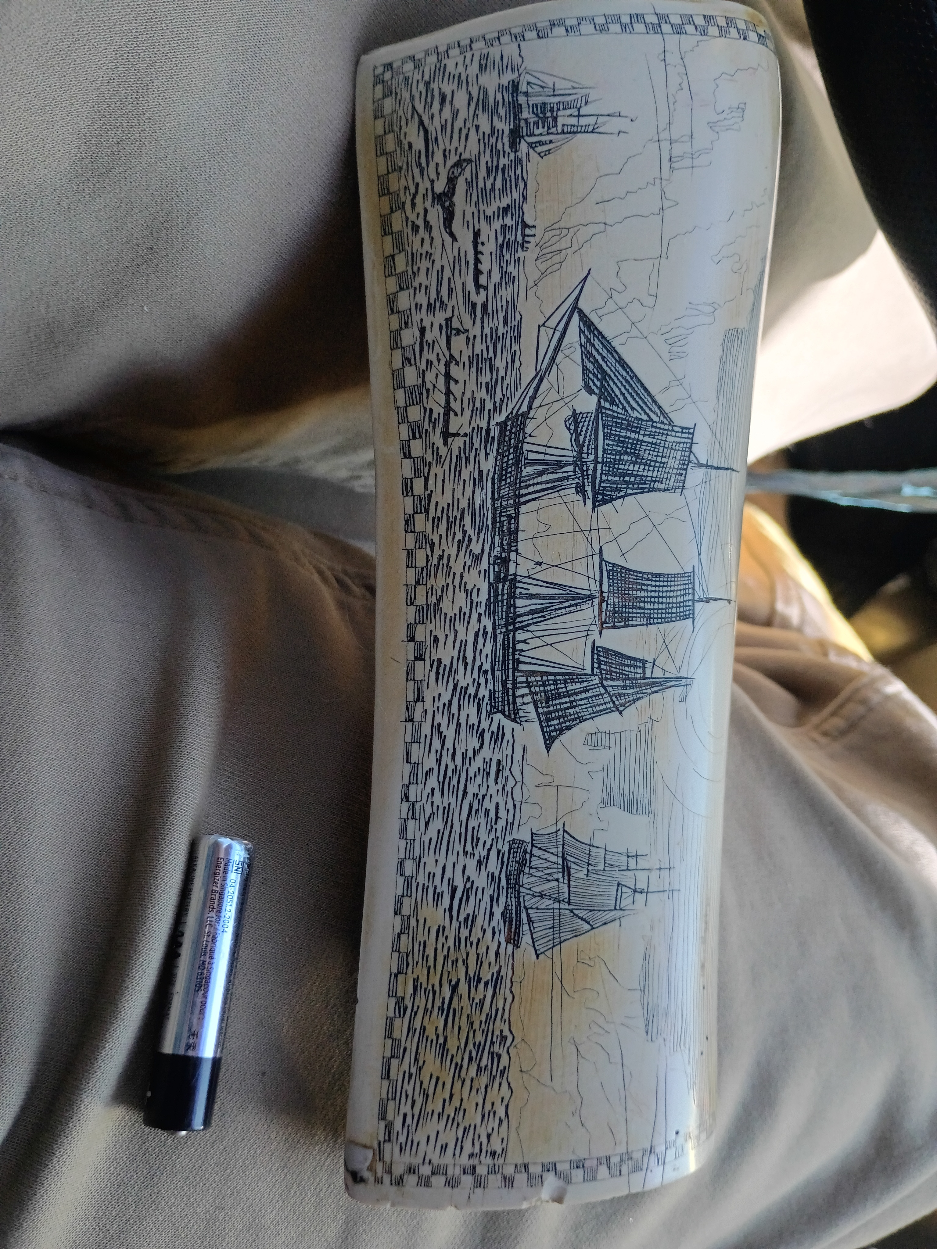 AI Appraisal: Vintage Whale Bone Scrimshaw Slab – Whaling Shi...