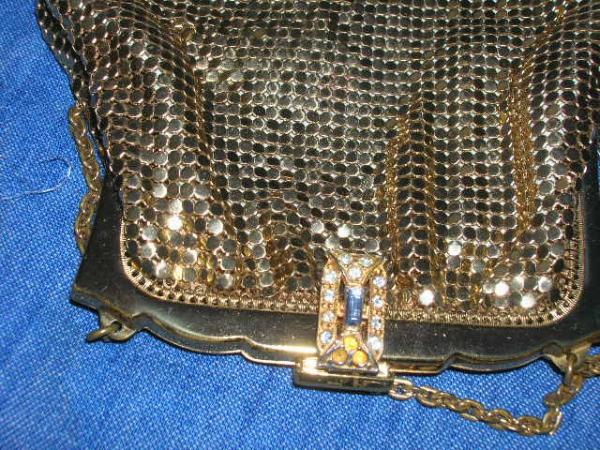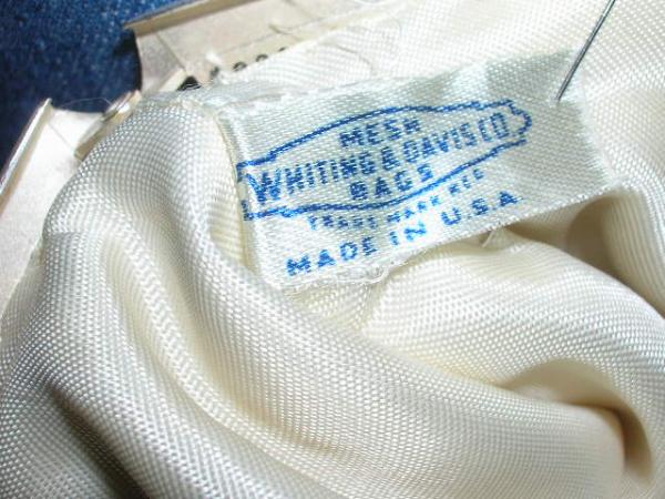 Both purses are Whiting & Davis, from around 1948. I got them when I was in Junior High. The gold purse is in brand new condition. The silver purse has some tarnish on the clasp.
