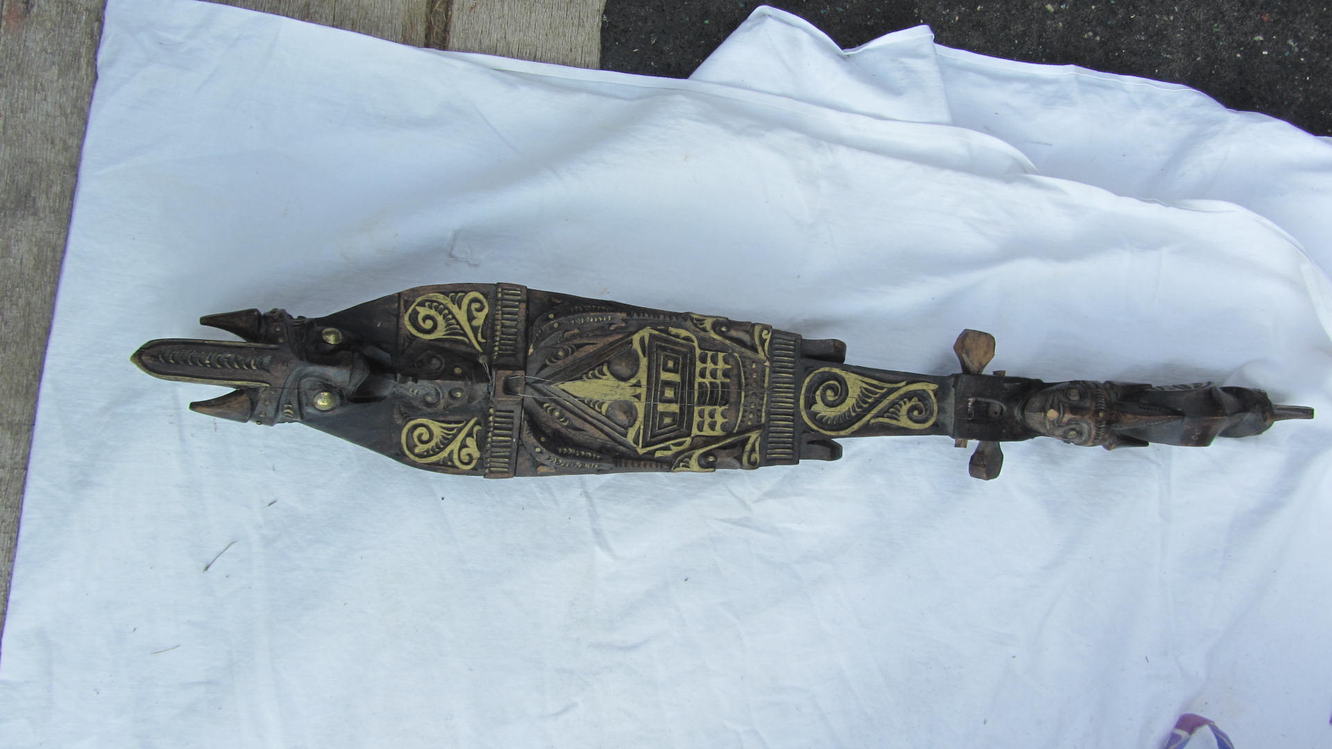its in the shaped of a long canoe skinnier at one end' - no other identifying marks