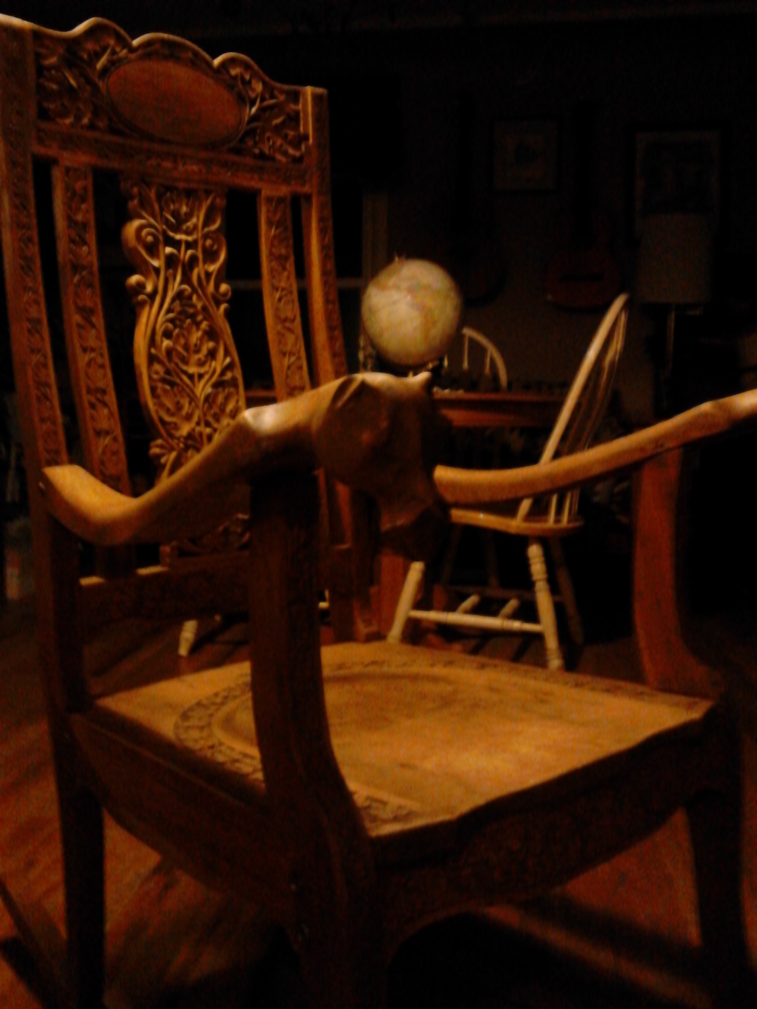 This is a very special chair given to me from my grandfather who has passed in 01'...It's very unique and I can't find anything like it and I have no clue what style or where it's made from.I am very curious about the history of this special piece of furniture from my late grandfather... please can you help;)..