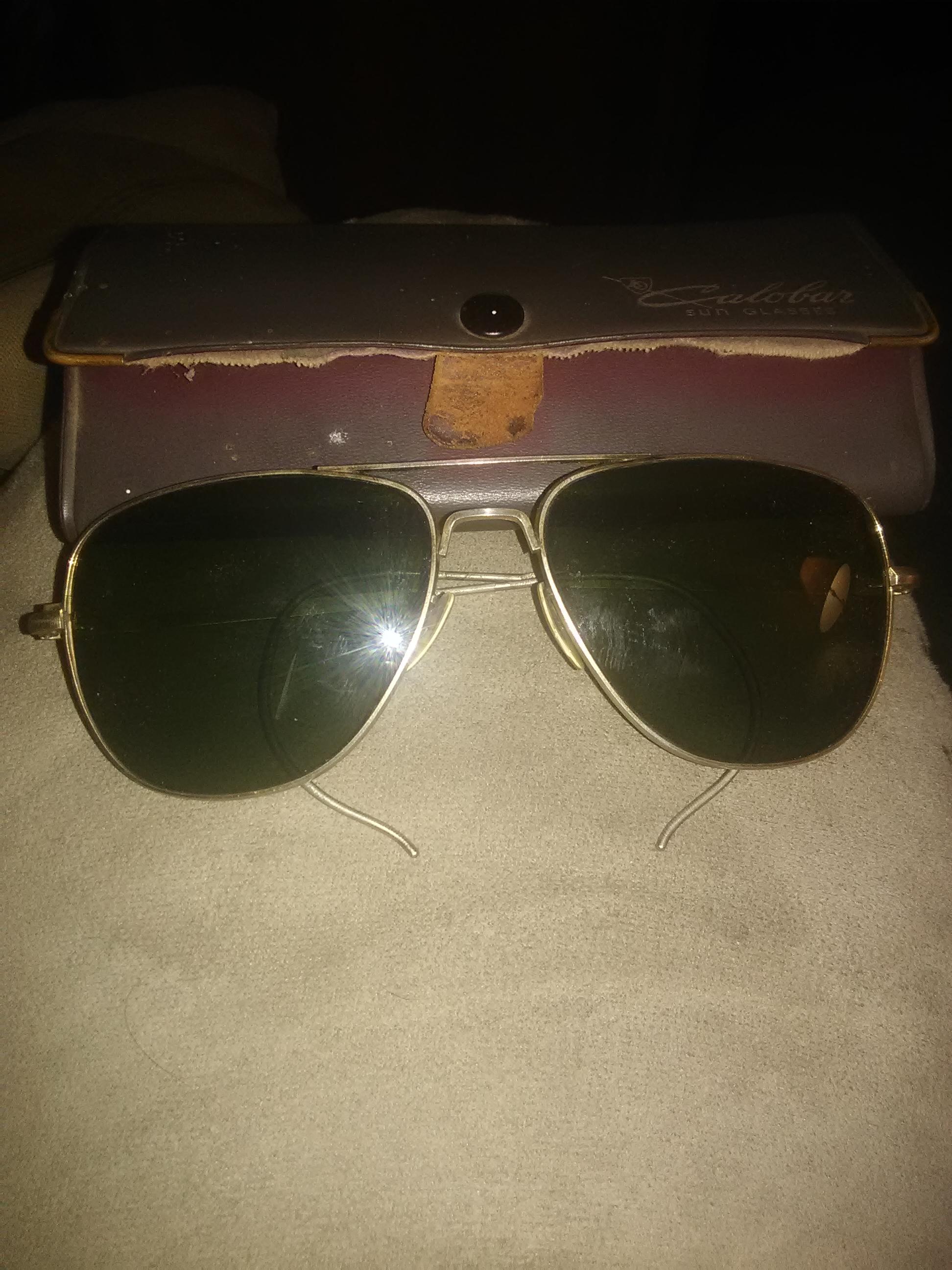 Vintage WWII era AO calobar aviator sunglasses with green lenses