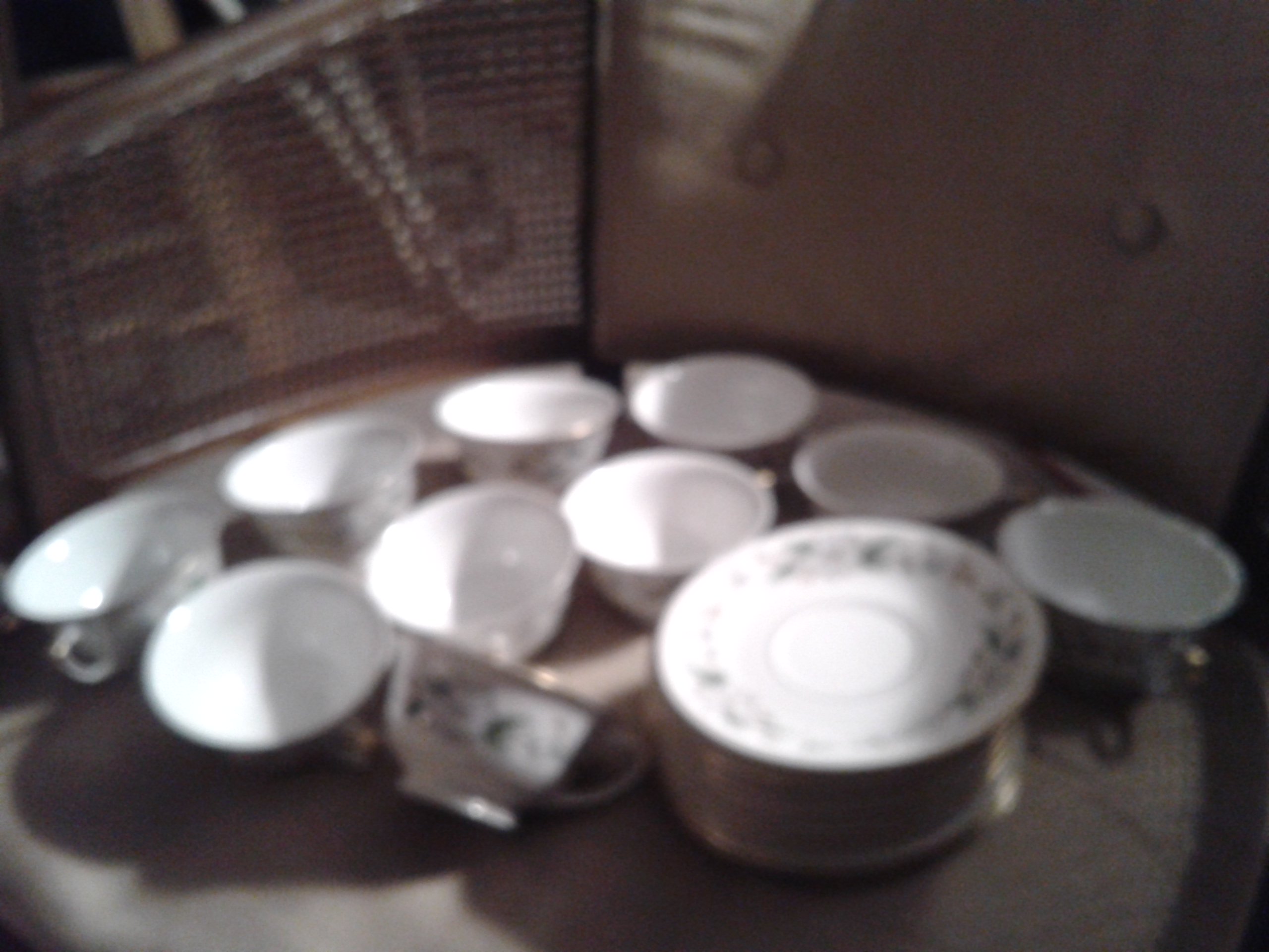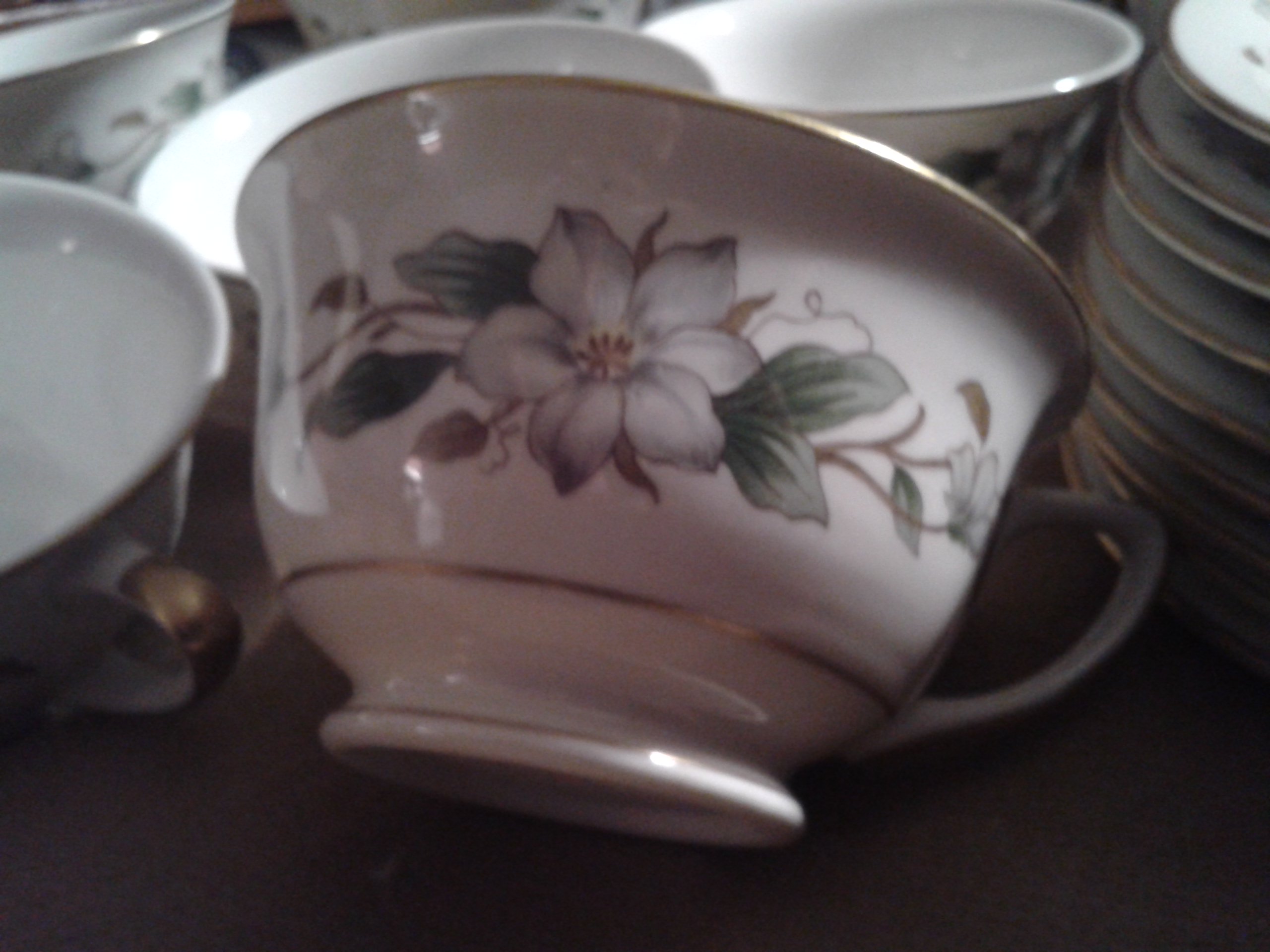 I have a full set of Vogue Ceramic Industries, Governors Mansion~Arlington design teacups and saucers, 10 each.