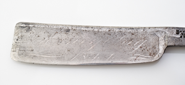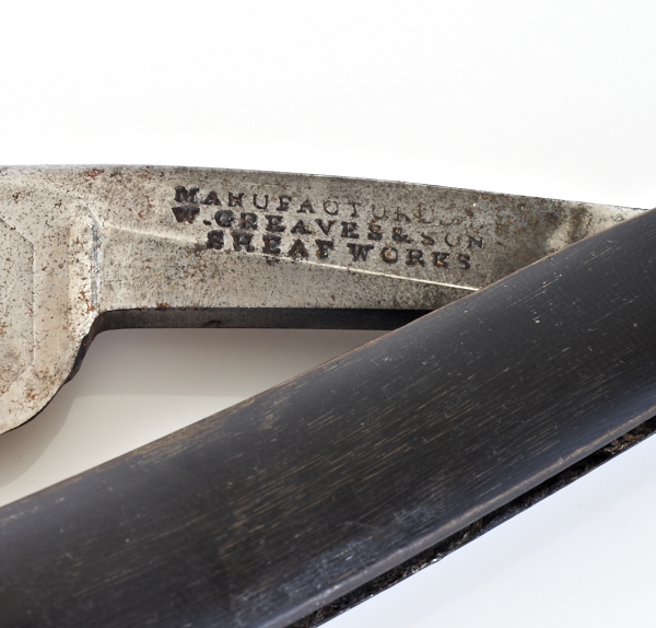 I don't know much about this razor, other than that it was made by W. Greaves & Son Sheaf Works, and based on the short lifespan of the company, and the etched date in the blade, I'm guessing it was made around 1844. Also guessing that it was made to commemorate the election of 1844, of which Henry Clay was a part. The blade is etched "Henry Clay 1844".