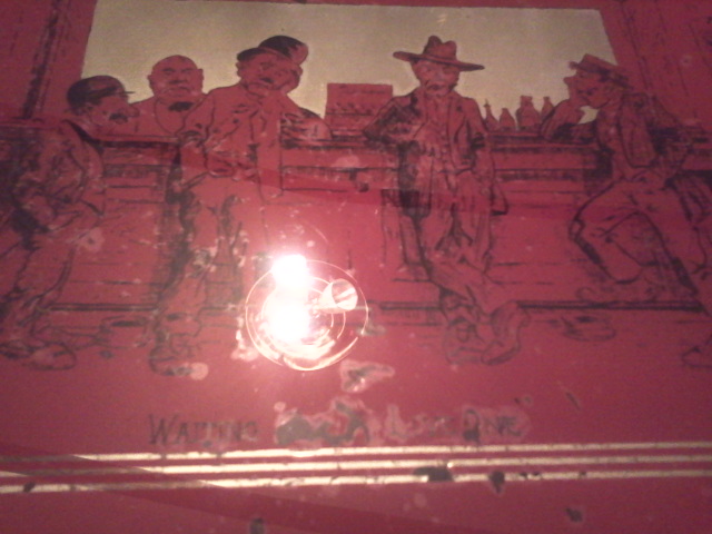 This is a serving tray that is glass and mirrored that I found. I am not sure of the date of the item. It has a cartoon bar scene on it that reads "Waiting for a live one". It does not have a date or signature on it. I have tried looking on the internet and cannot find anything like it. It is red and the tray is wooden and it looks like the mirror part is just nailed to fit in the space. I would just like to know if anyone has ever seen something like this or knows what its worth if anything. Thank you.