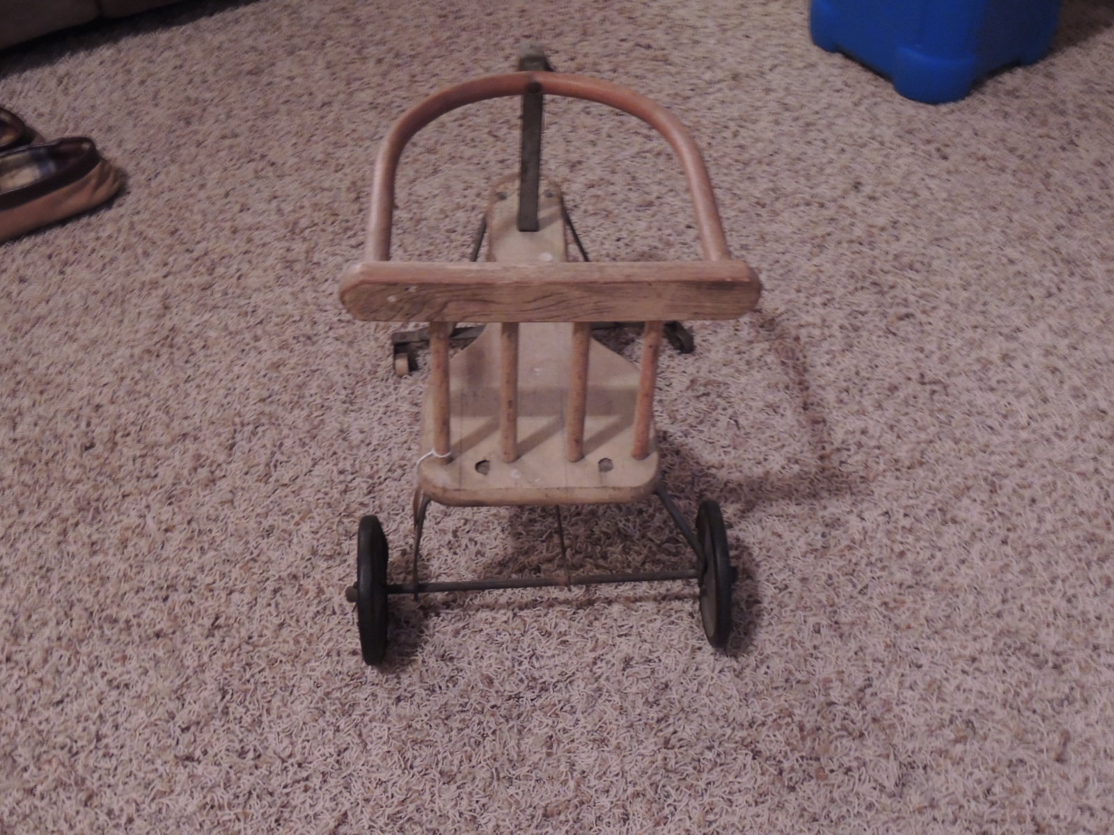We bought this child's walker at a yard sale last summer. We have had several people look at it and no one has ever seen one like it. We believe it is an early child's walker but we are not sure. We would like to know how much it is worth if anything and what exactly it is.