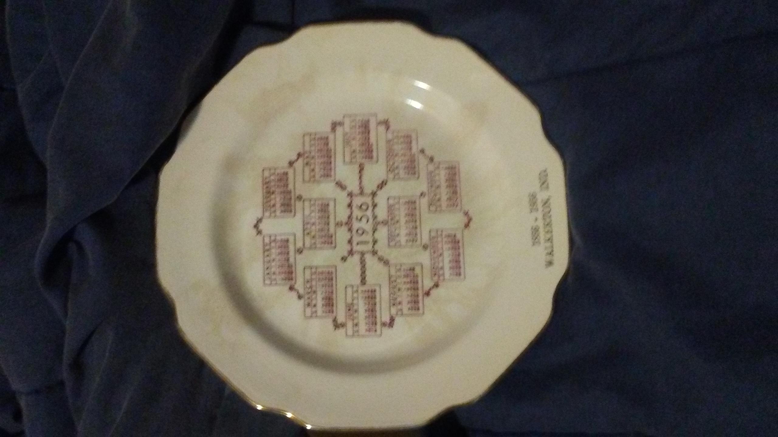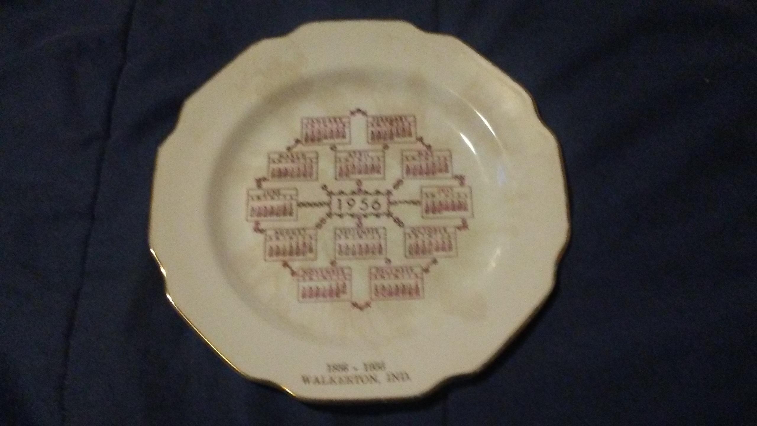 My Step Mother passed away and I found and old Walkerton, IND.100 year anniversary plate dated 1956. It is from the Sabina Line Warranted 22k.