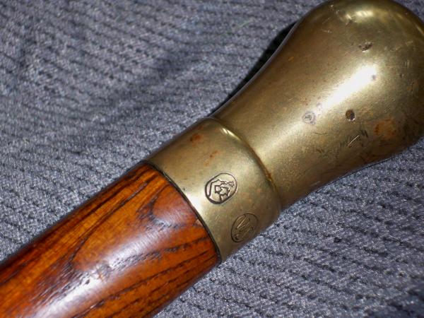 Re: walking cane oval brass knob, solid wood shaft, maybe oak