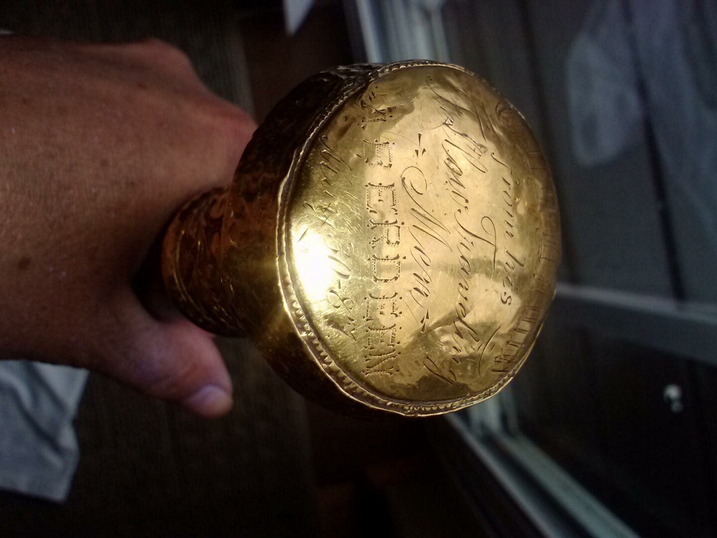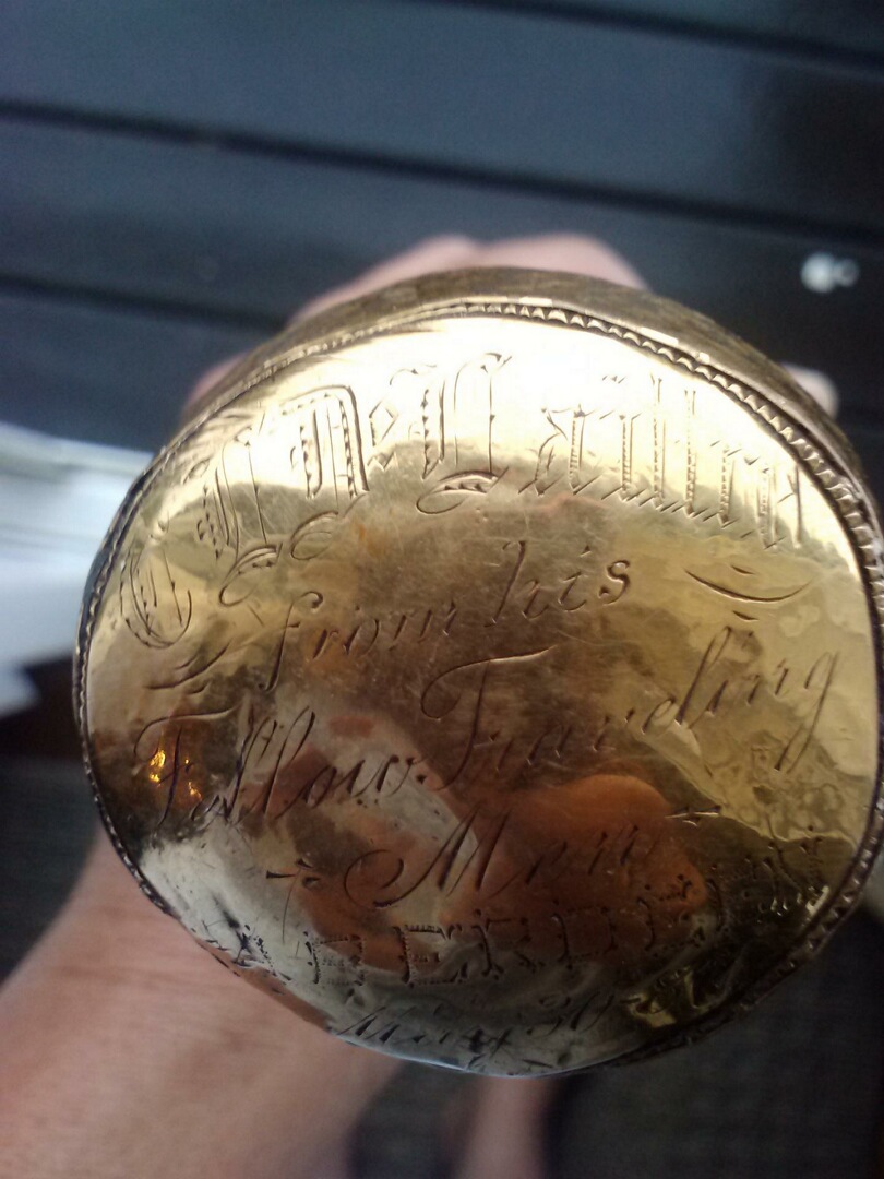 Alot of information is written on this cane. I've added detailed pics hoping someone can help with manufacturer history and possibly some ideas of who it originally belonged to. A guess of value, if any, would be interesting as well.