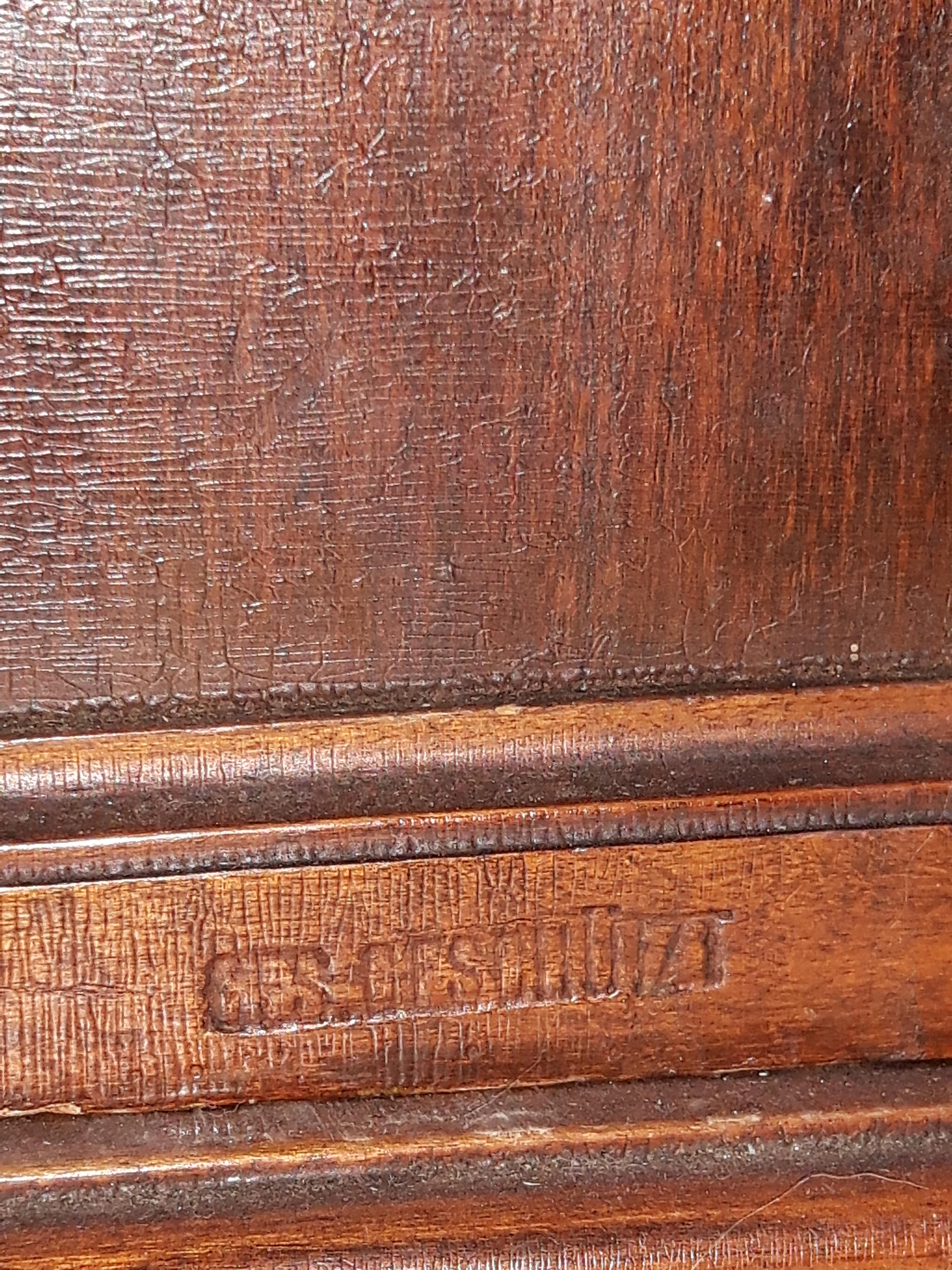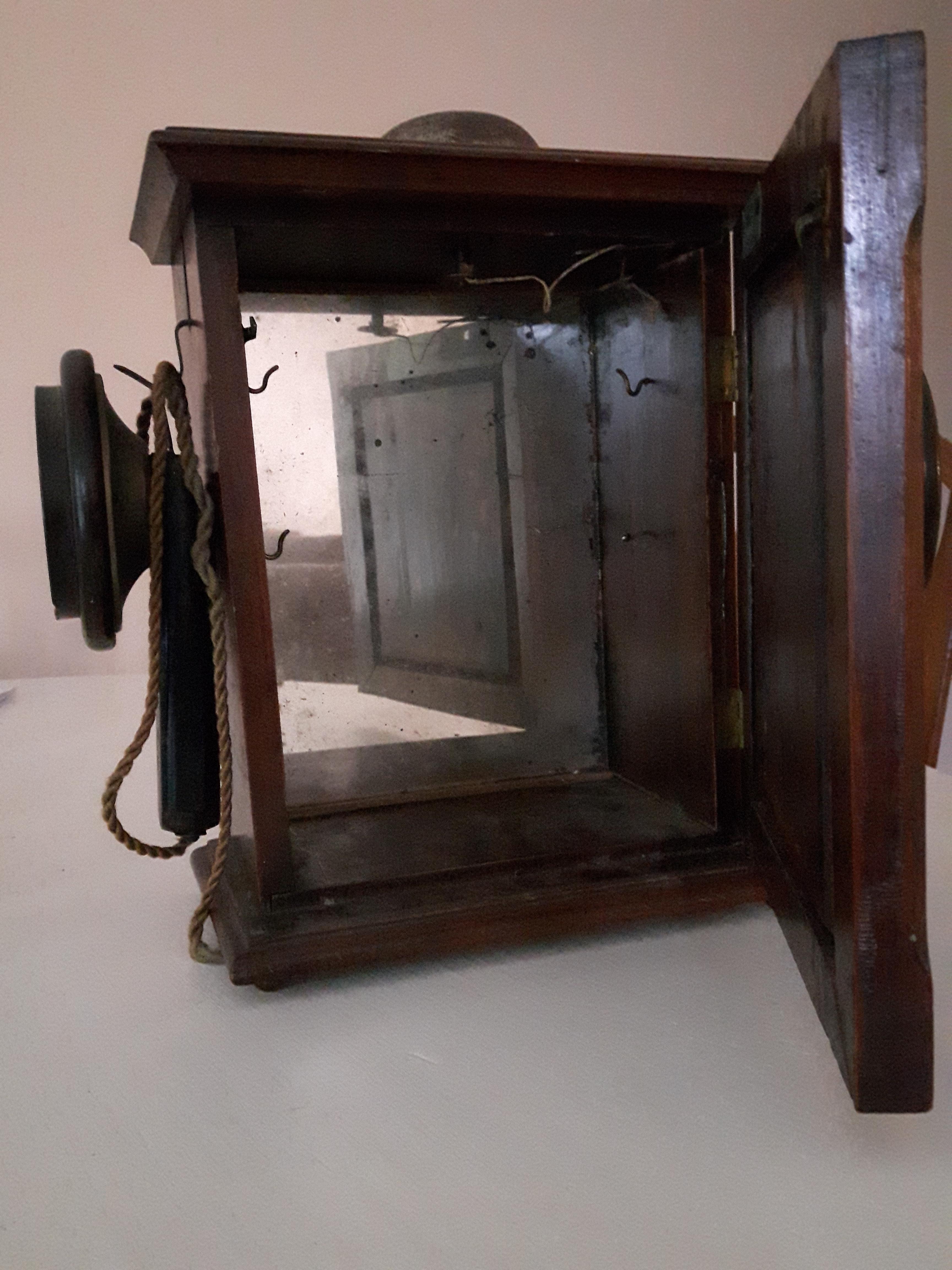 This belonged to my great-grandmother (I'm 37) who gave it to my father when he was young so it must be at least a hundred years old. I have not been able to find anything like it online, not sure why. It's a wall phone that holds a liquor decanter. There is a label engraved in the wood on the front that says GES GESCHÜTZT which apparently means it was made in Germany. Jim bean made wall phone decanters but I have not been able to find anything that looks like this. Showed it to an antique dealer who had never seen anything like it. He researched it extensively as well and could not find any information. He offered to buy it but I declined because I would like to know more about it.