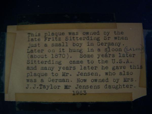 My grandfather wrote (in 1963) the note regarding its' history that is on the back of the plaque
