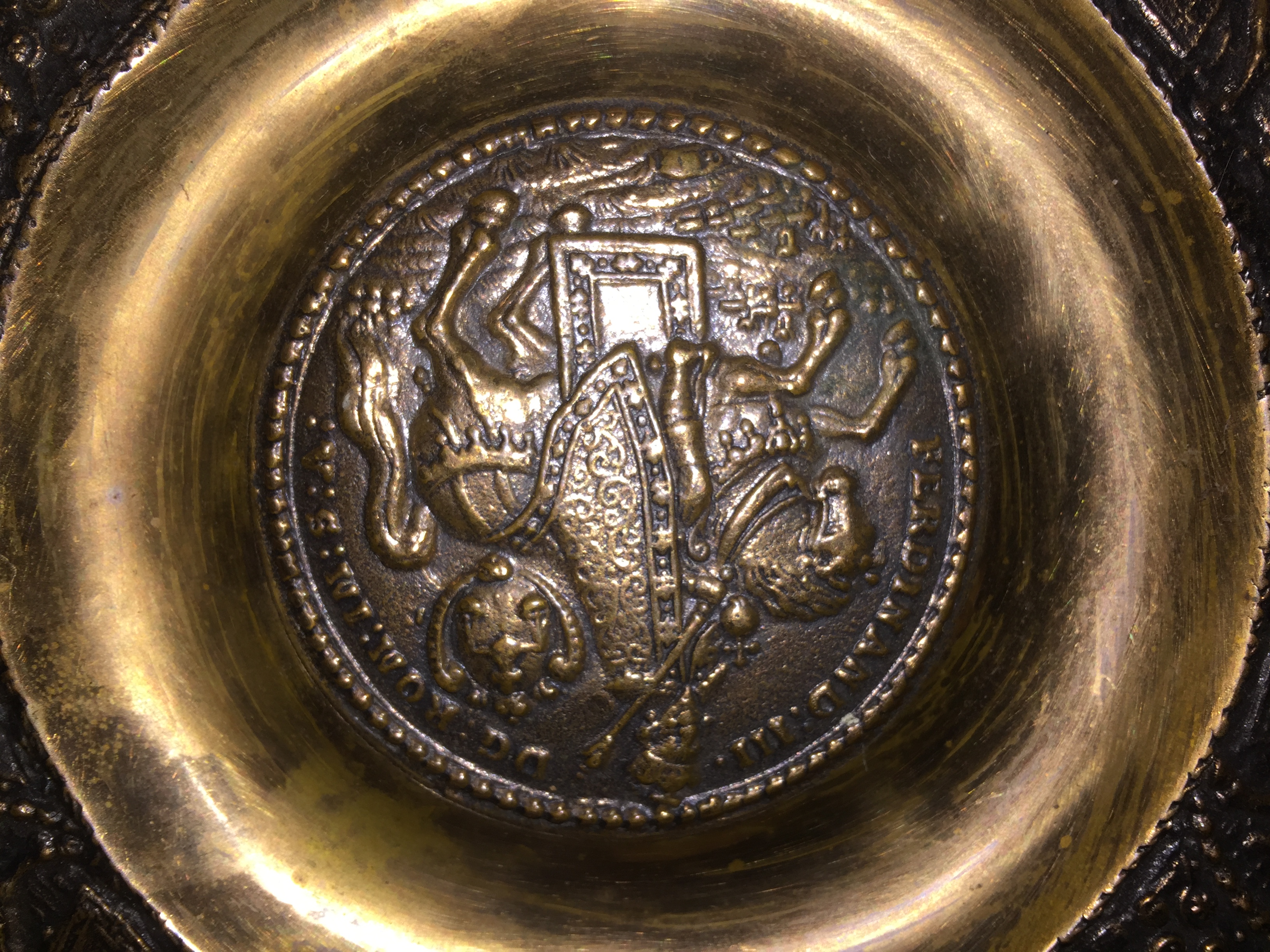 I found this plaque at a garage sale and hope someone can tell me something about it. I have searched but cant find anything. It is metal dont know if it is bronze brass or copper but is quite weighty. It has Ferdinand 111 UG.ROM.IM.S.A around the centre and COPIE on the back.