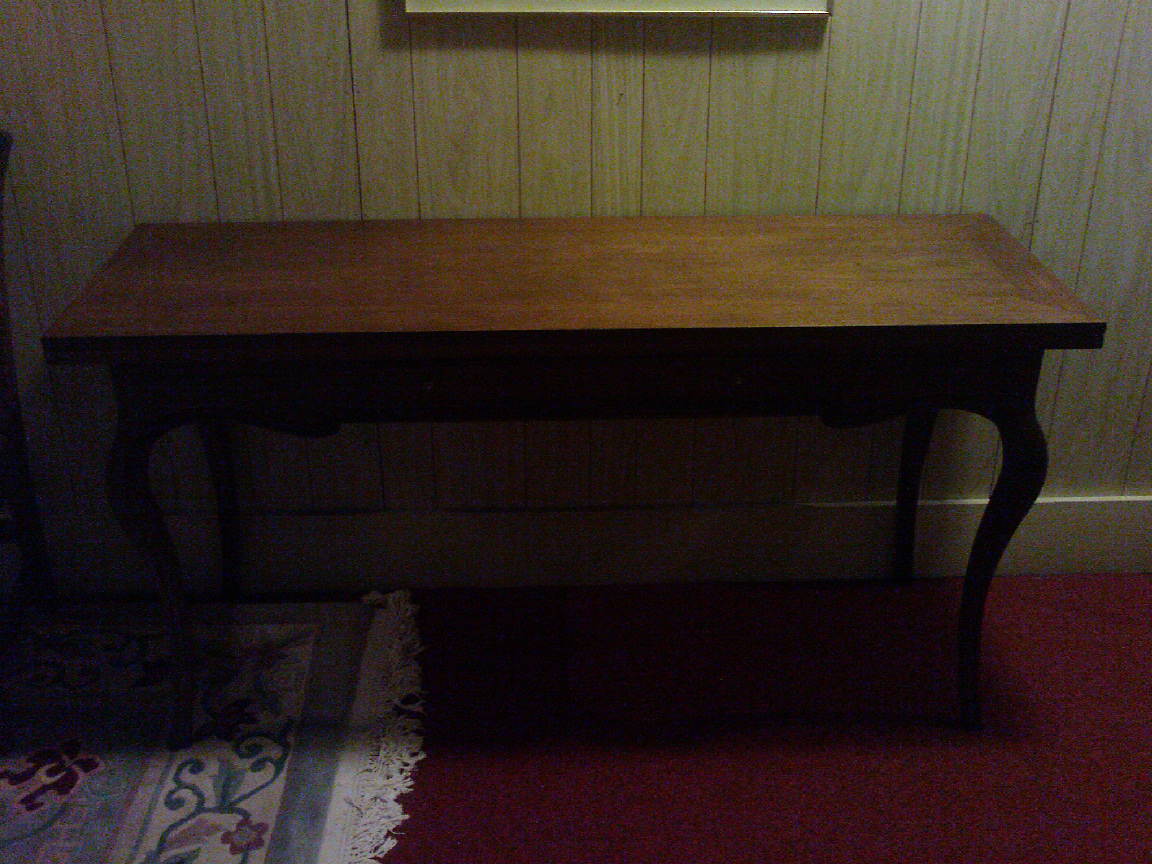 Has drawer in center and table top opens to 40" width.