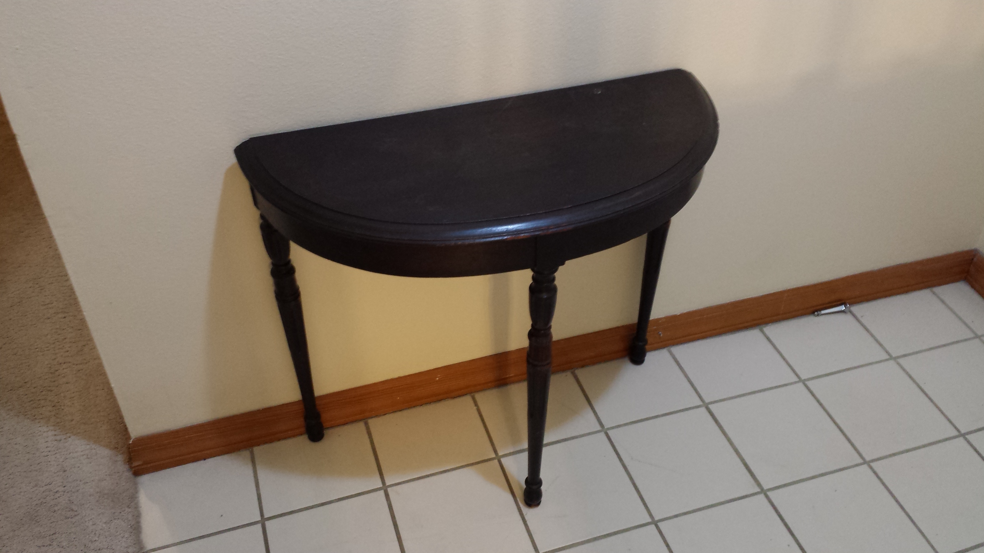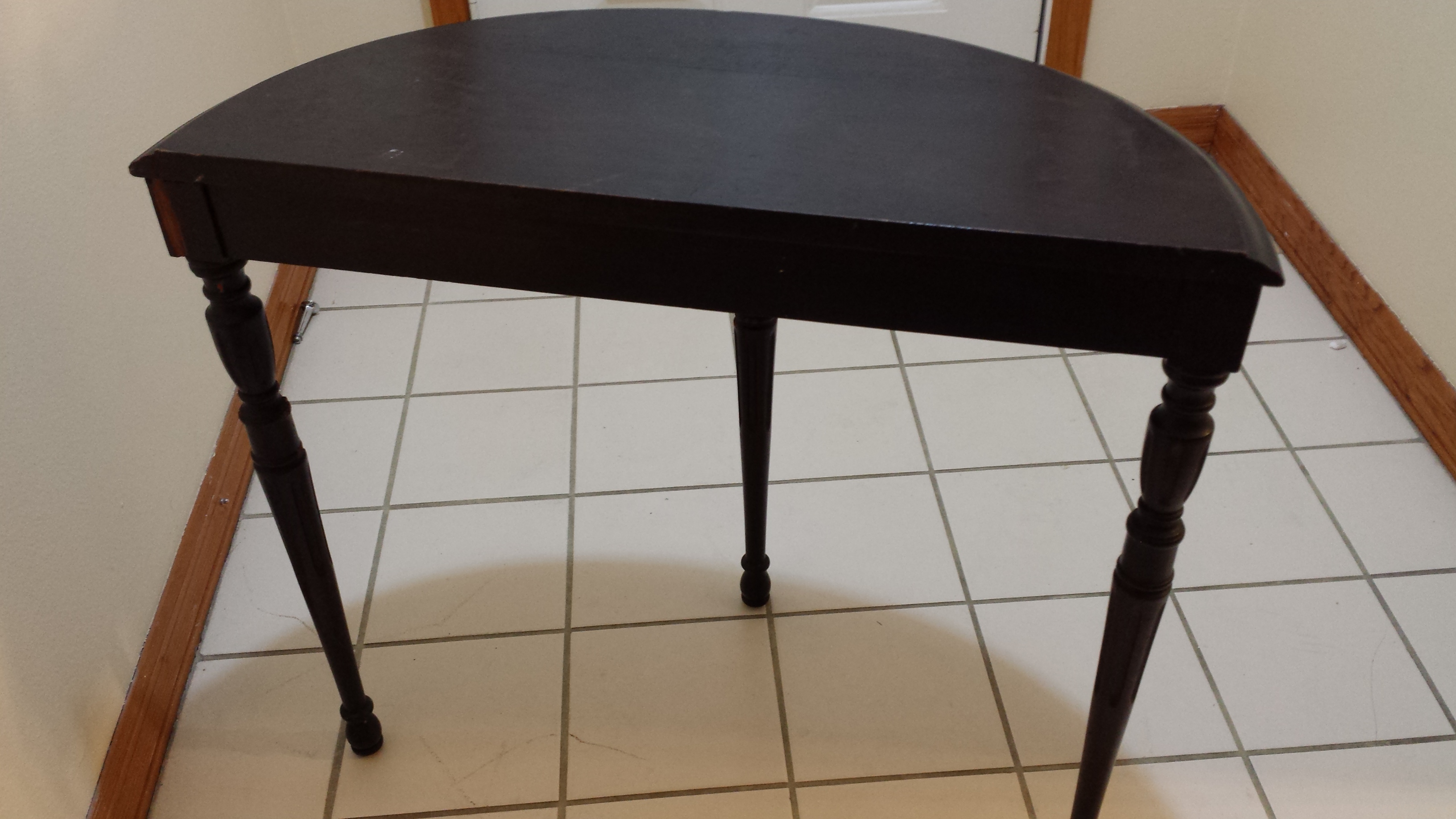 Small walnut stained wall table. Don't know the age but it's from OW Richardson & Co.