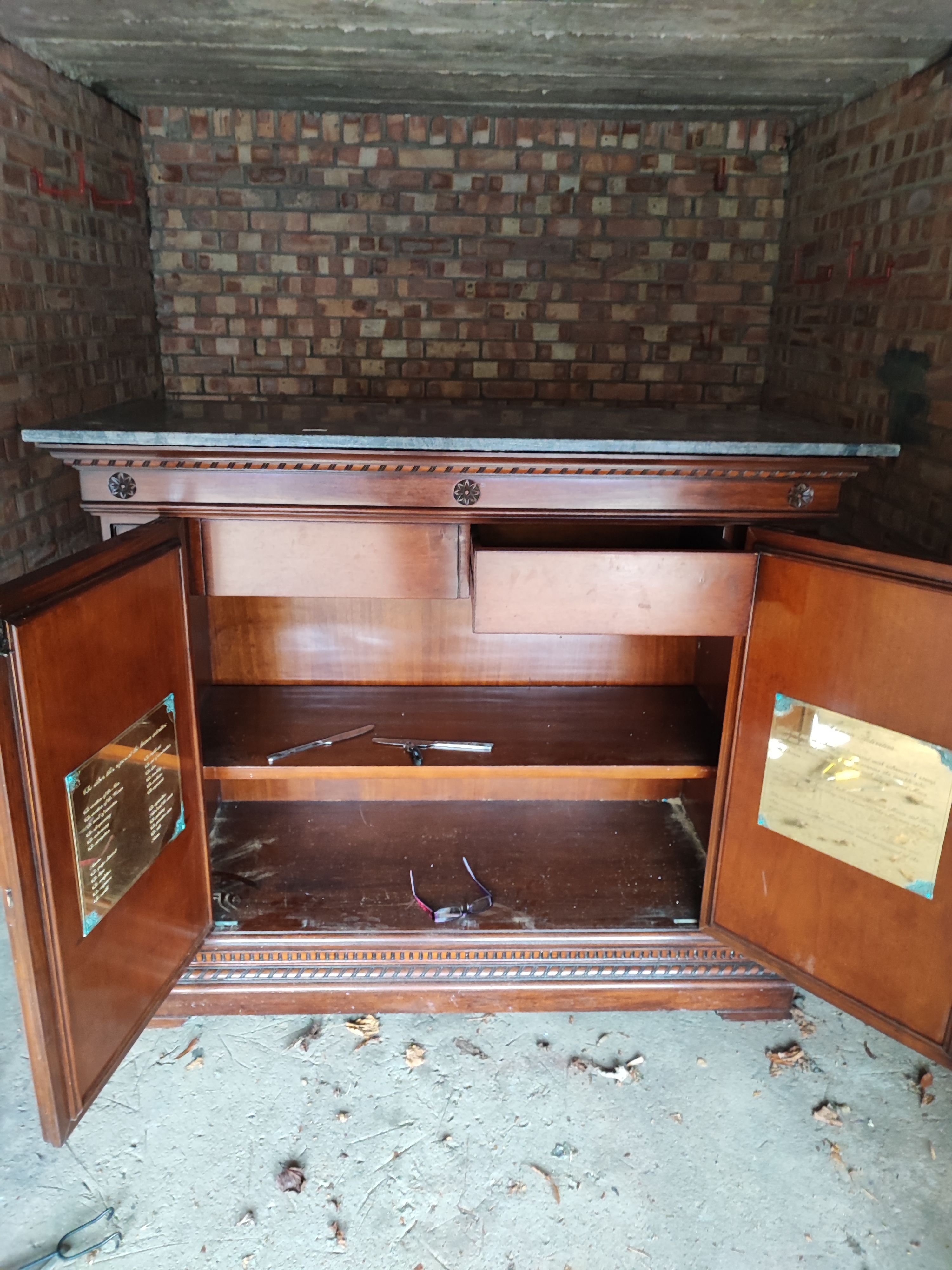 Inside the doors, on each door is an engraved in English plaque.