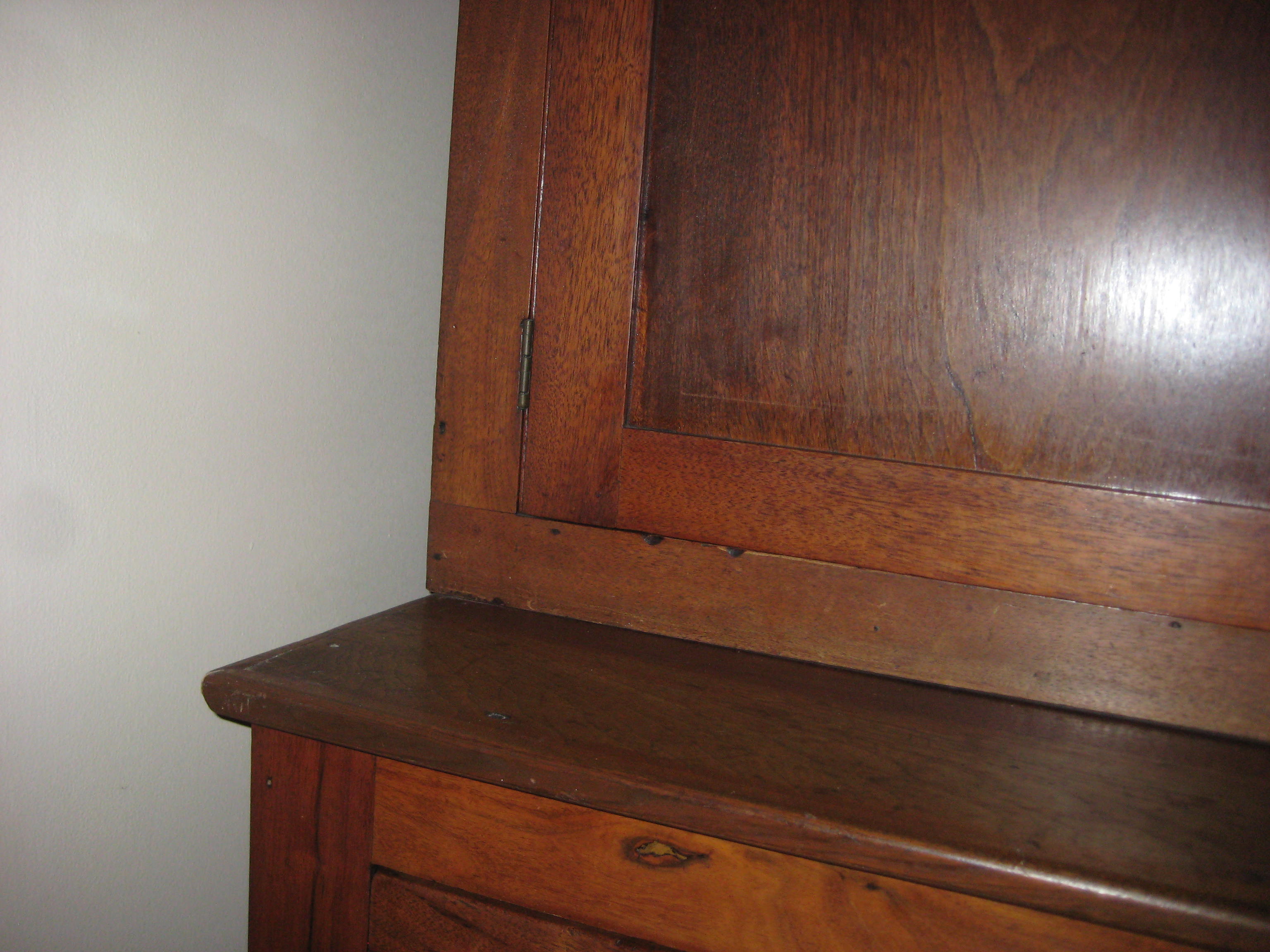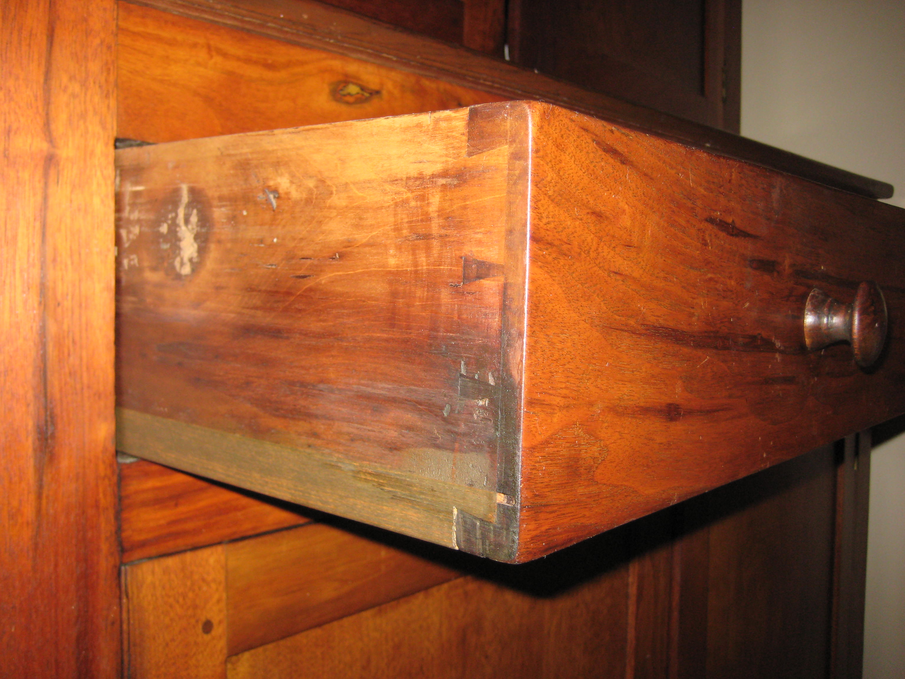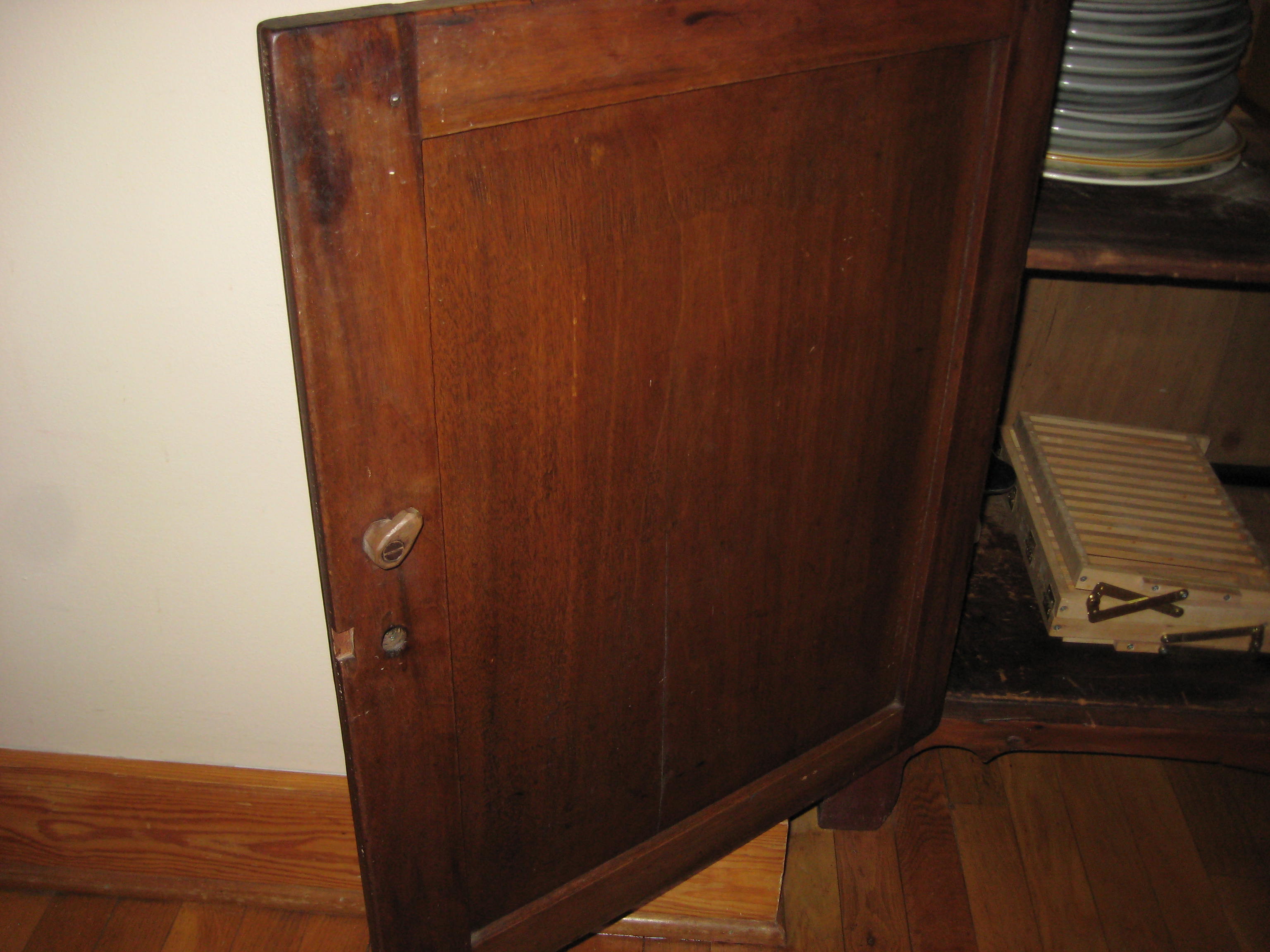 History Found in a junk shop in Roanoke, Virginia in the mid 1960s in very degraded condition having been used to store meats. He was in the process of repairing and refinishing it when he died. I had a professional cabinet maker finish the restoration to a, how shall I say it, a less than pristine condition. I wanted it to retain some of the historical markings.