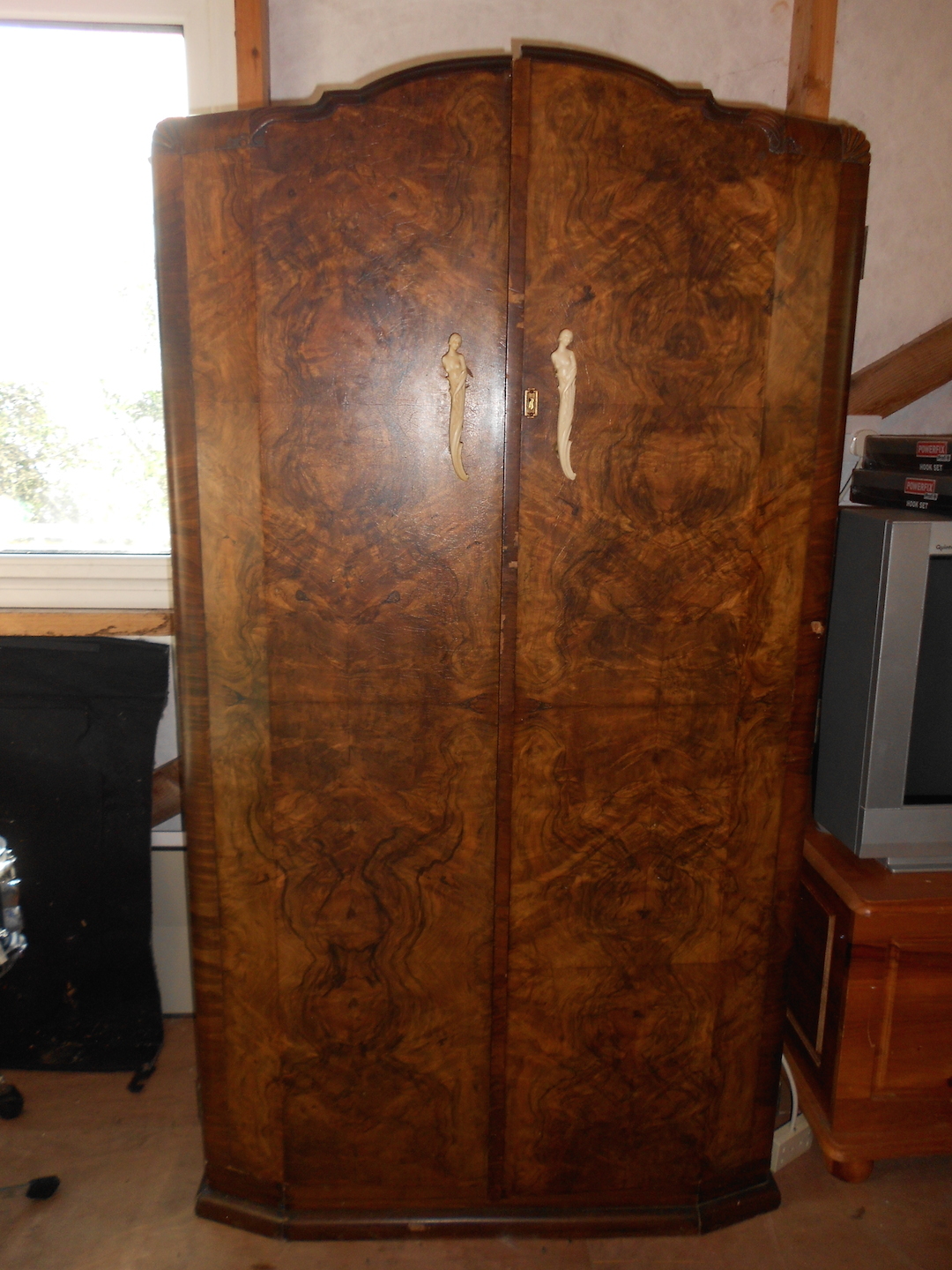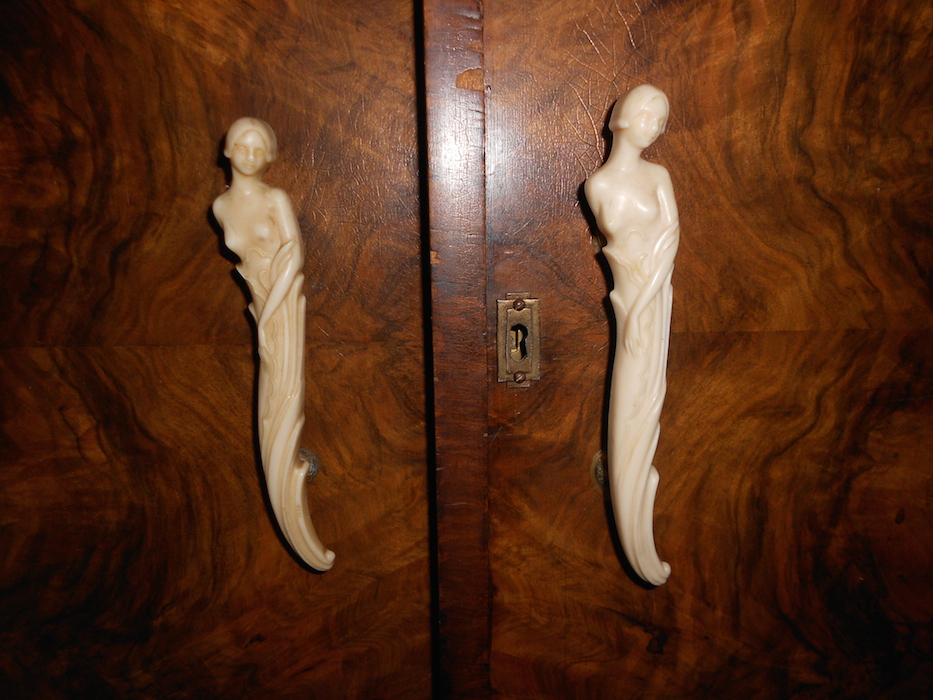 So this is my grandmother's wardrobe I think this is art deco era. Its walnut veneer ( I think) and the handles are either bone or ivory. Any ideas?