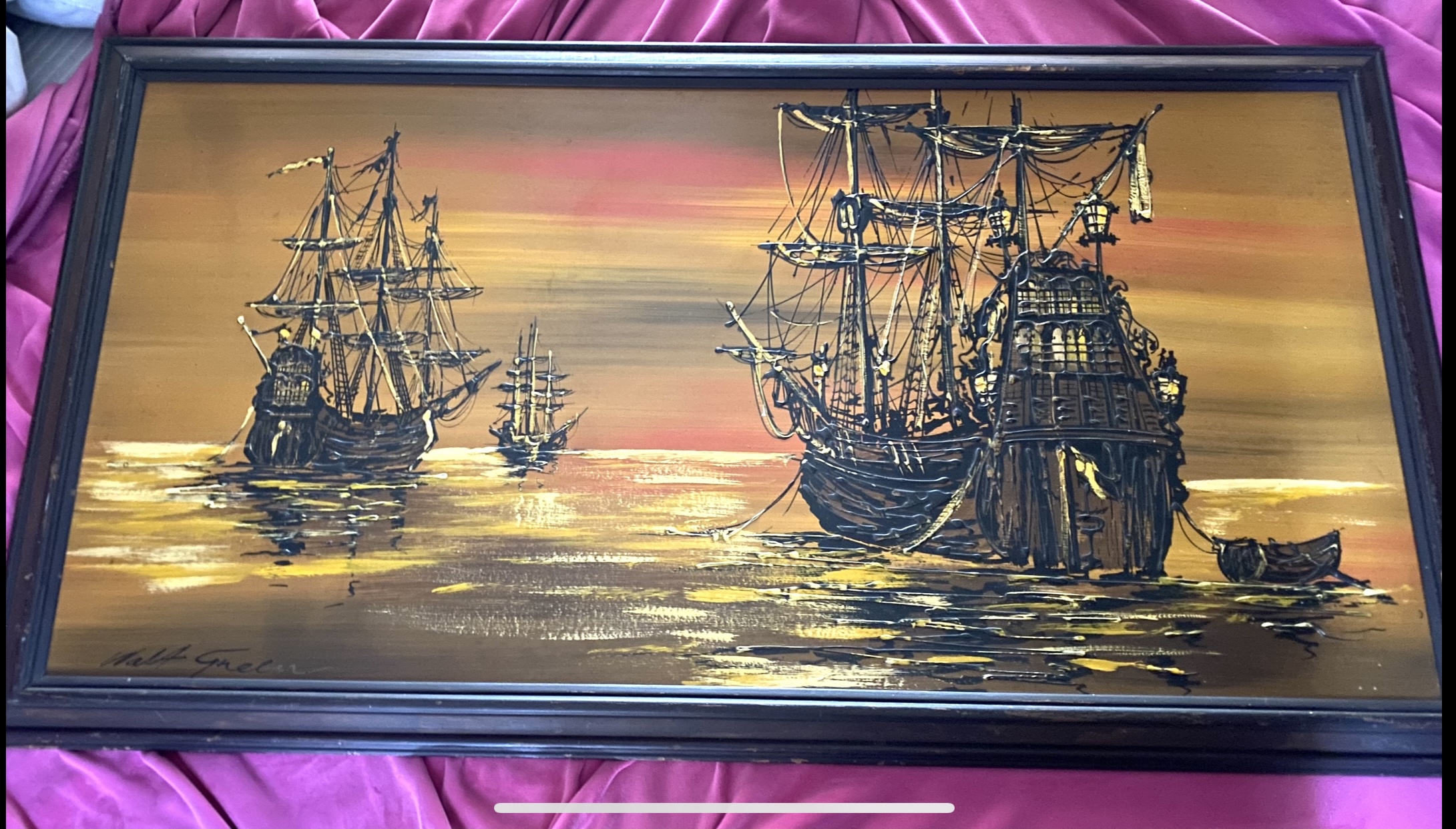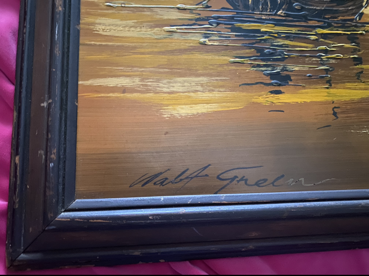 Came across this painting and wanted to learn more! It’s not on a canvas it’s on actual wood, with raised bumps in the paint lines making me think it’s original. Please tell me anything you can! The name is Walt Green. There’s no other identifiers on the piece, no date on the back.