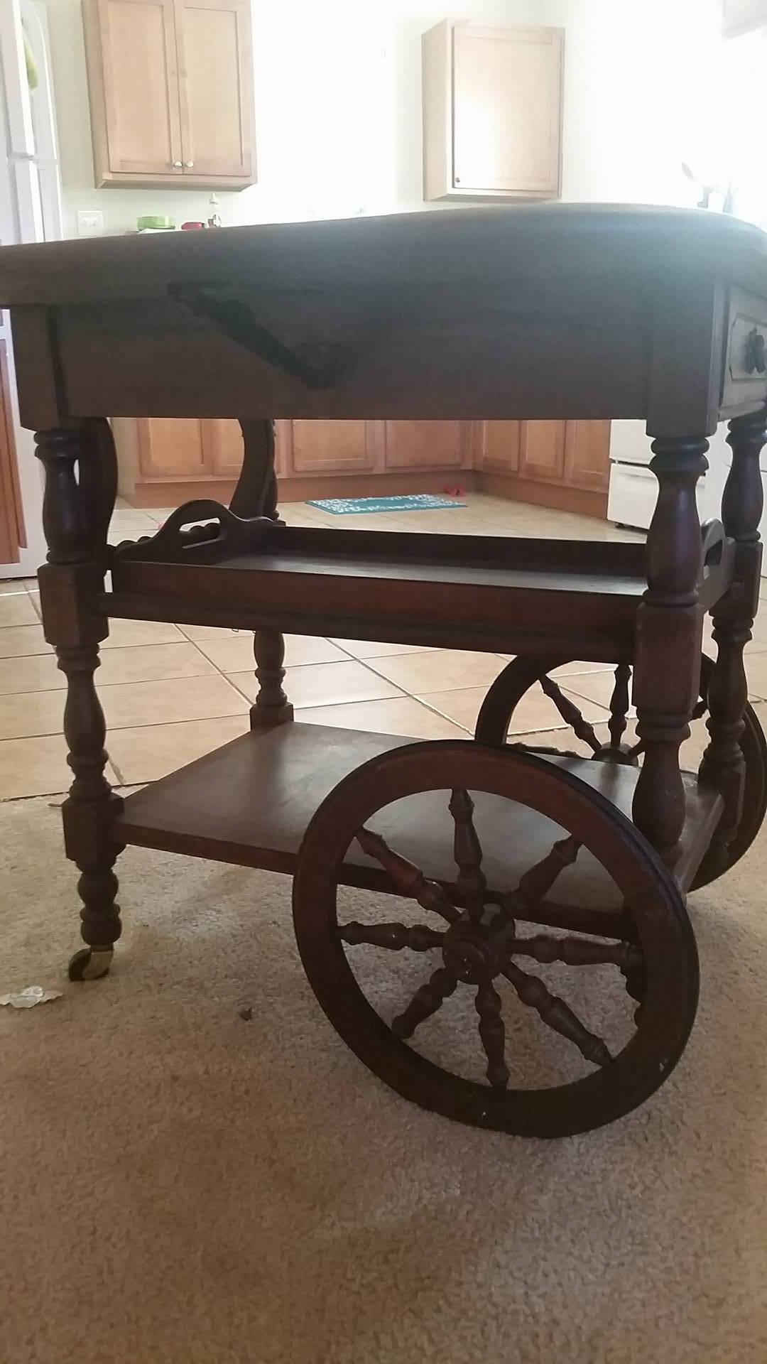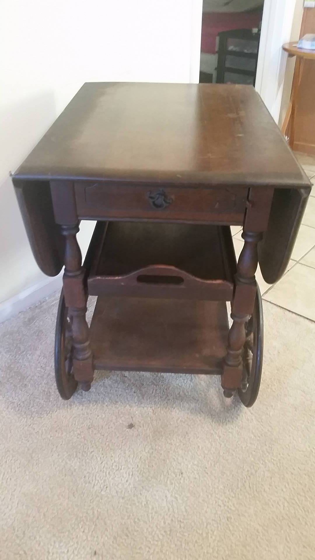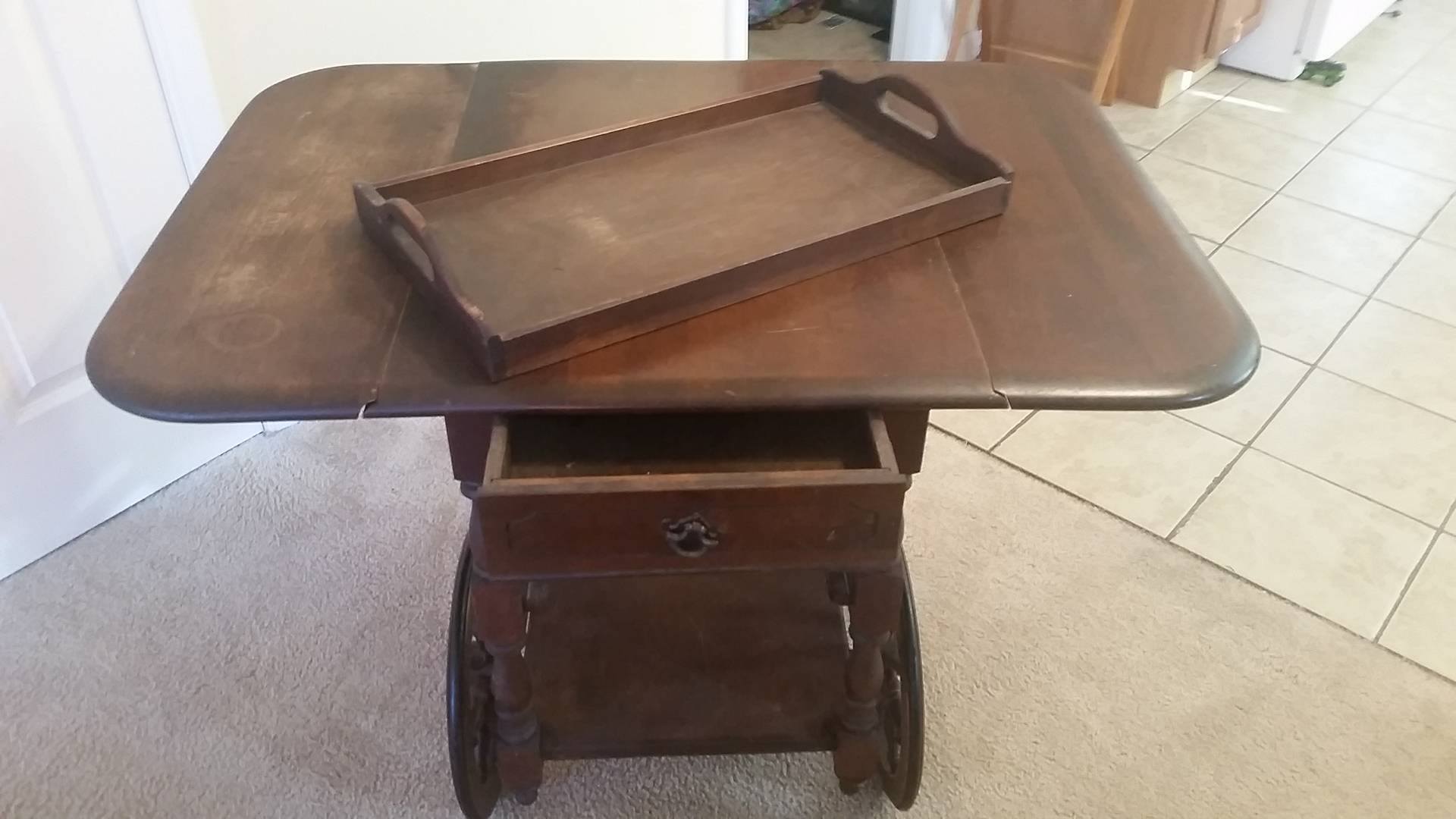 I have a Walter of Wabash antique tea cart. I have had it in the family for many years. I have no use for it anymore. It is all original, and it all still works!! The wheels still have movement when you pull or push it, the sides both open and lock to stay open, the drawer opens and closes with no problem and the tray is still with it!