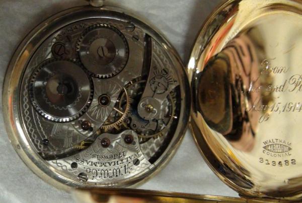 Waltham 14K Gold (585/1000 Fine) open face pocket watch circa 1907. 17 Jewels. Beautiful condition. Serial #15694432. Watch is working.