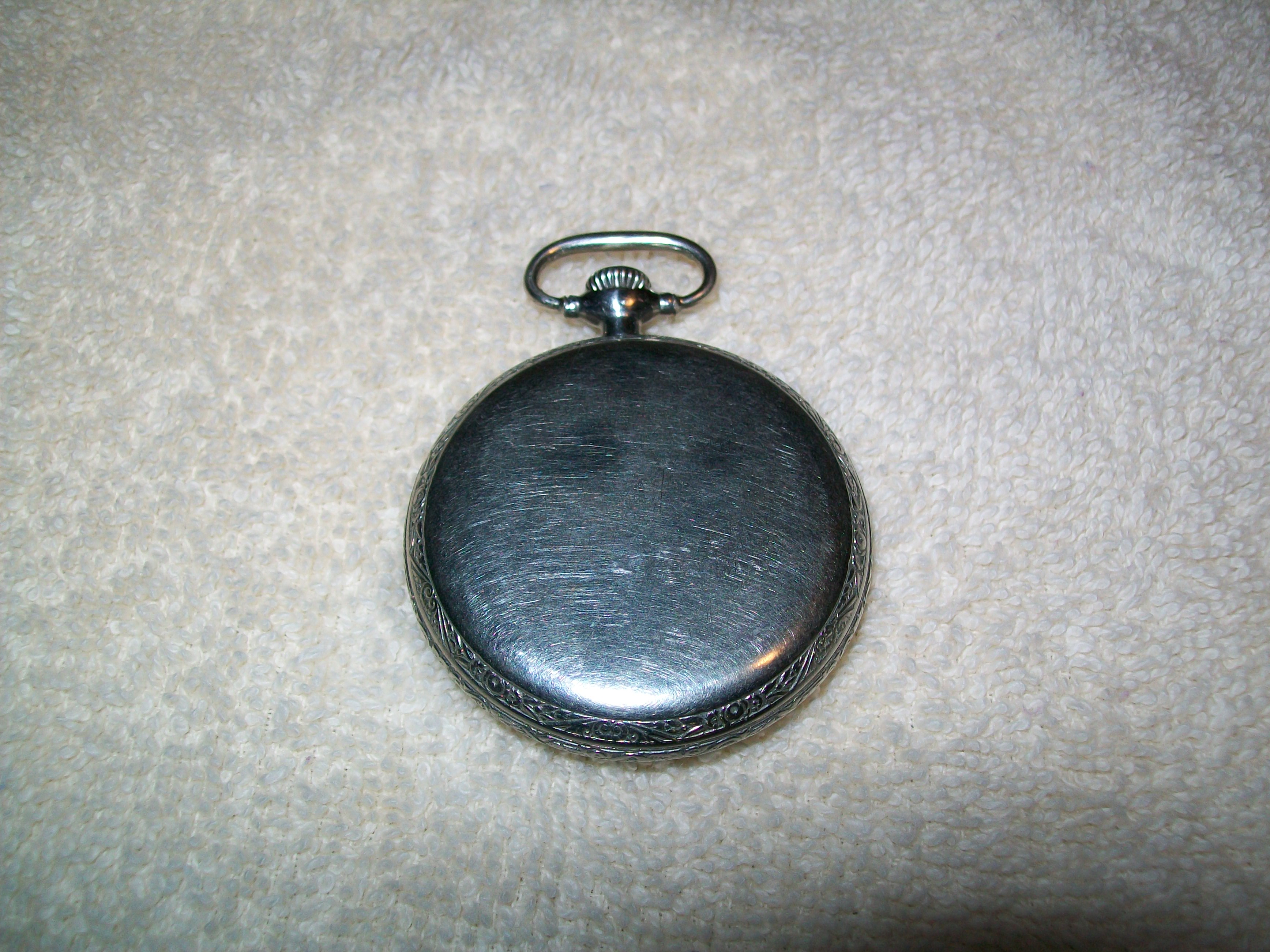 The pocket watch is in very good" working" condition.Minor scratching on the back from normal use.Glass is in very good condition,no scratches or cracks.Engraved on the inside of the back cover is: m 13357, m27467. There is engraving around the outside edges. Serial #22329199.I have wound it to make sure it worked,but have not ran it long enough to see if it was accurate.I did the best i could with the photos,i'm no photographer.