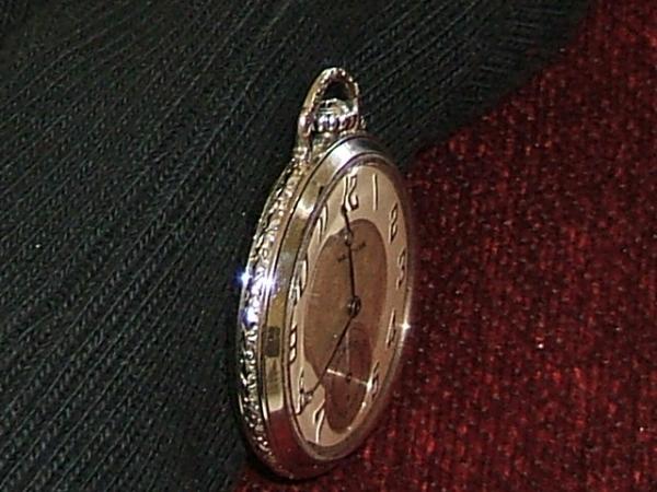 The serial number is 24674639. It's white gold filled with yellow gold slanted numbers, 19 jewel.