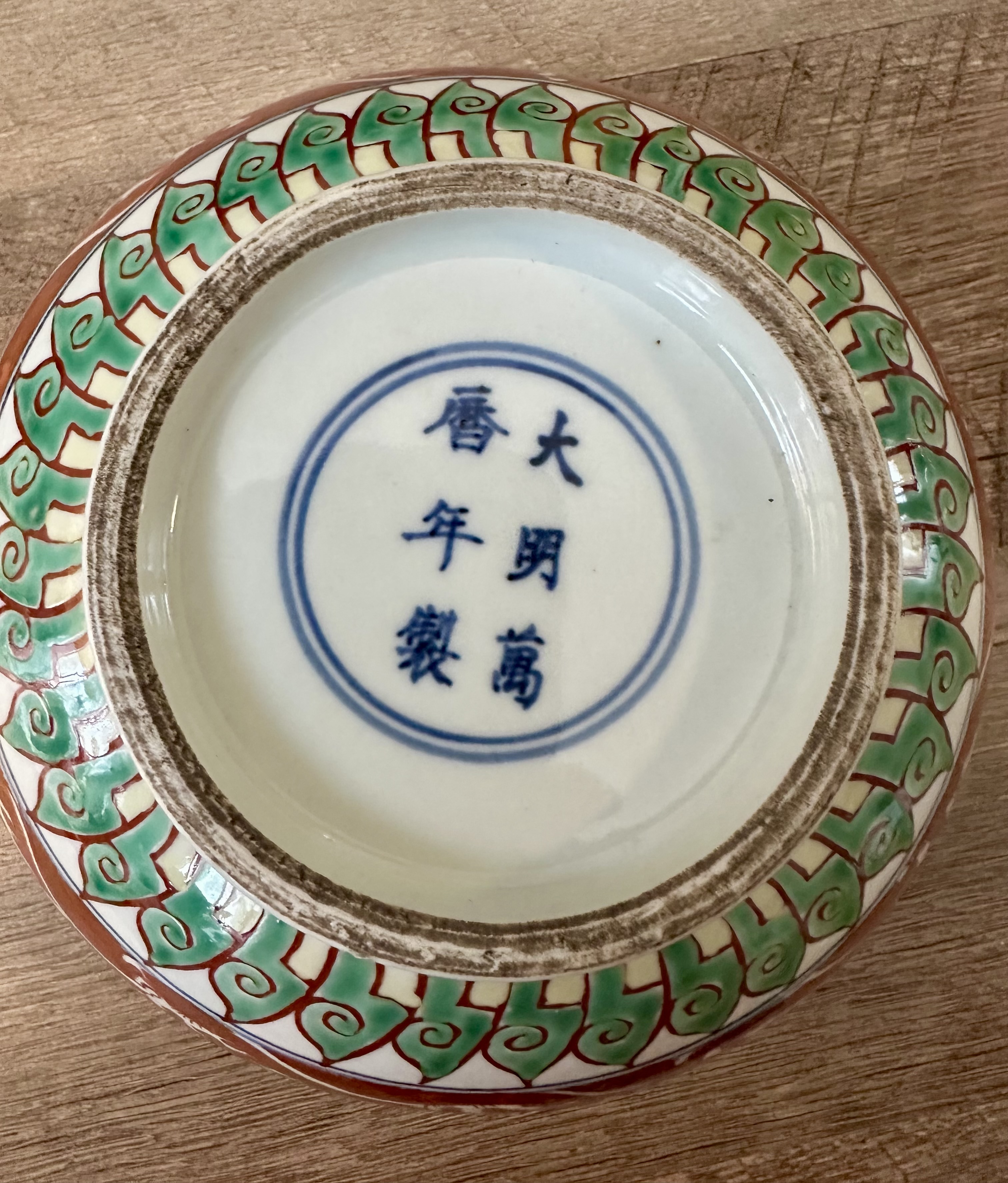 Authentication markers include the apocryphal mark on the base, which reads 大明万年製 (Dà Míng Wàn Nián Zhì), translating to "Made in the Great Ming Dynasty for Ten Thousand Years." This mark is often found on later reproductions. Red flags include the lack of wear typical of older pieces and the quality of the glaze, which may not match that of authentic Waucai porcelain. Professional authentication is recommended to confirm its age and origin.