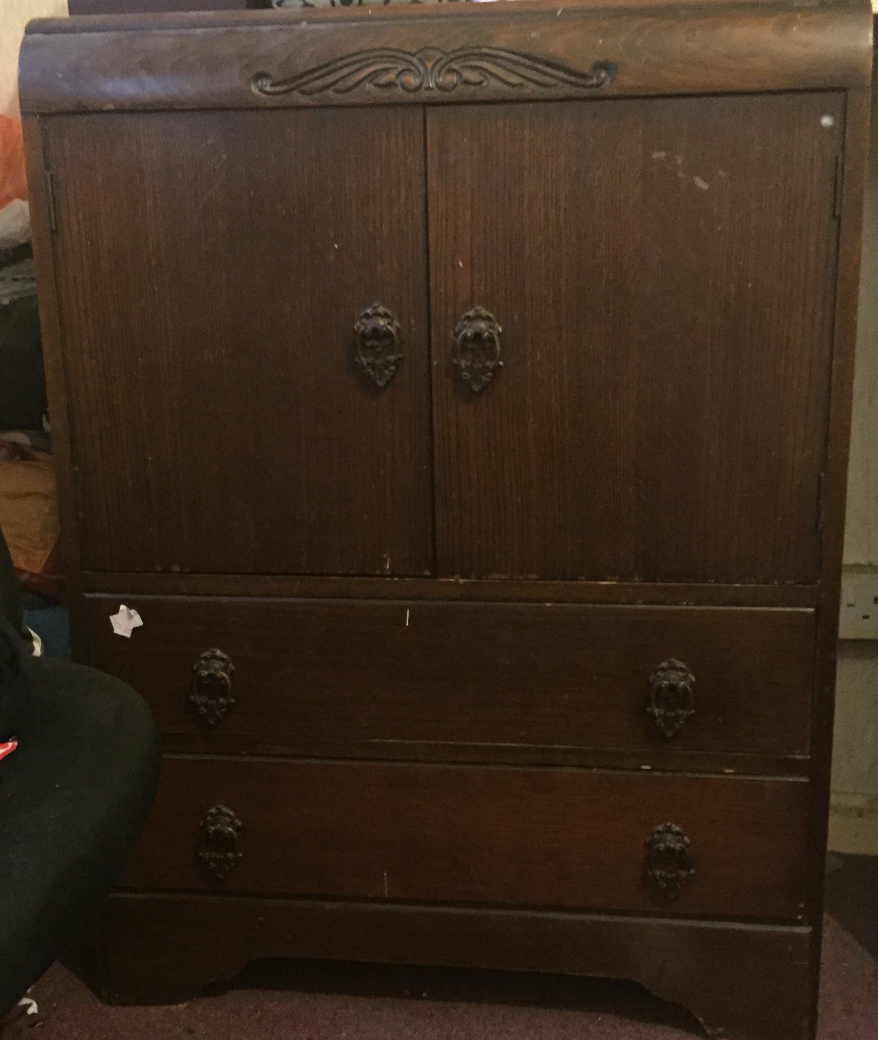 Large wardrobe and chest of draws with a few bumps and scrapes but in very good condition for the age of 50+ years if not more.