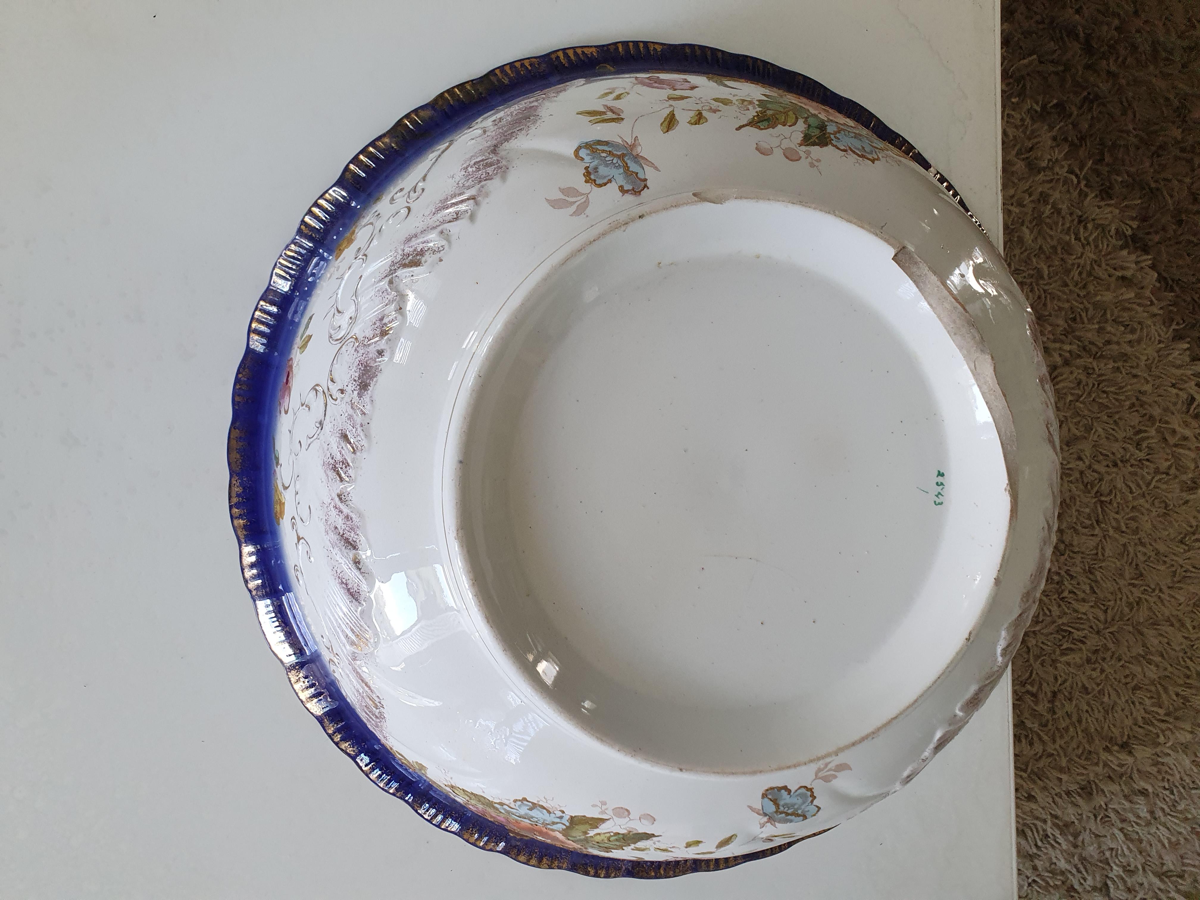 I have had this antique wash bowl for about 30 years. My mother gave it to me and I have no idea how long she had it. It only has a number on the bottom - 2543. No other markings. I would like to know if anyone can tell me who made it; how old it is and how much it would be worth.