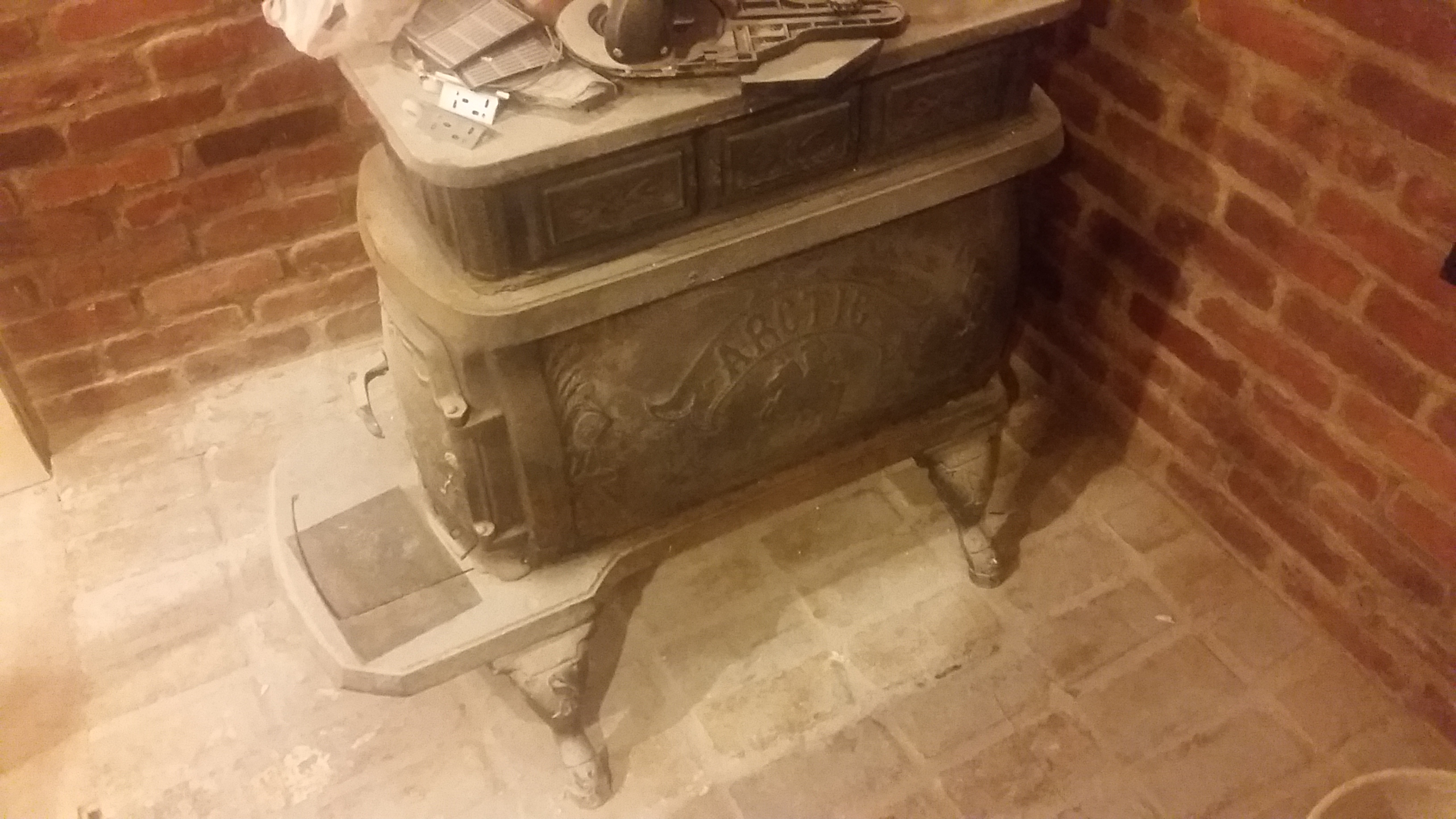 Wood burning stove made by Washington Stove Works with the word "Arctic" on the side and photo on a man on a horse. In working condition, no broken or missing parts, and airtight. Just needs a cleaning. Unsure of year made or years used.