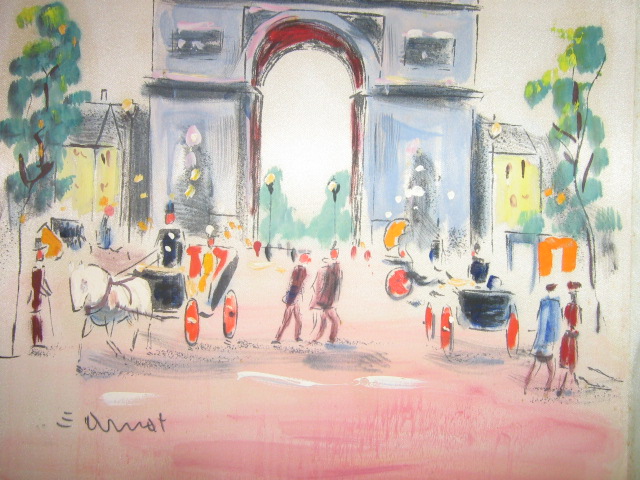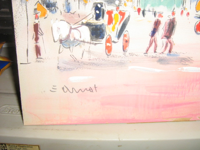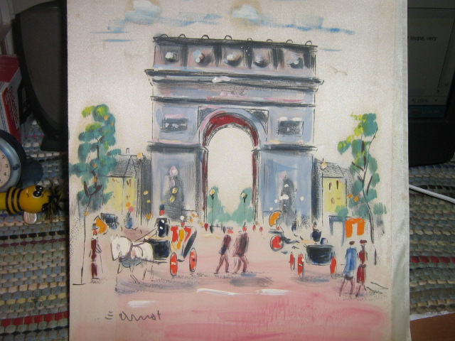 This pictue looks as though it was painted some where in Europe in the 1920's to1940'. It looks like it is painted on silk material, with the medium being water color. It was bought at a yard sale,so I do not know anything about it. I was hoping you could tell me the artist. They maybe African American.