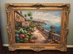 Paintings are framed and ready to hang on a wall. E ach one is approx 52in x 60in with a 8in frame border.