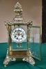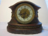 Mantle clock. Paperwork on back side says Waterbury Clock Company. Plain chime on the hour and at 30 minutes. Timing spring broke apart so cannot be wound until fixed. Chime works.