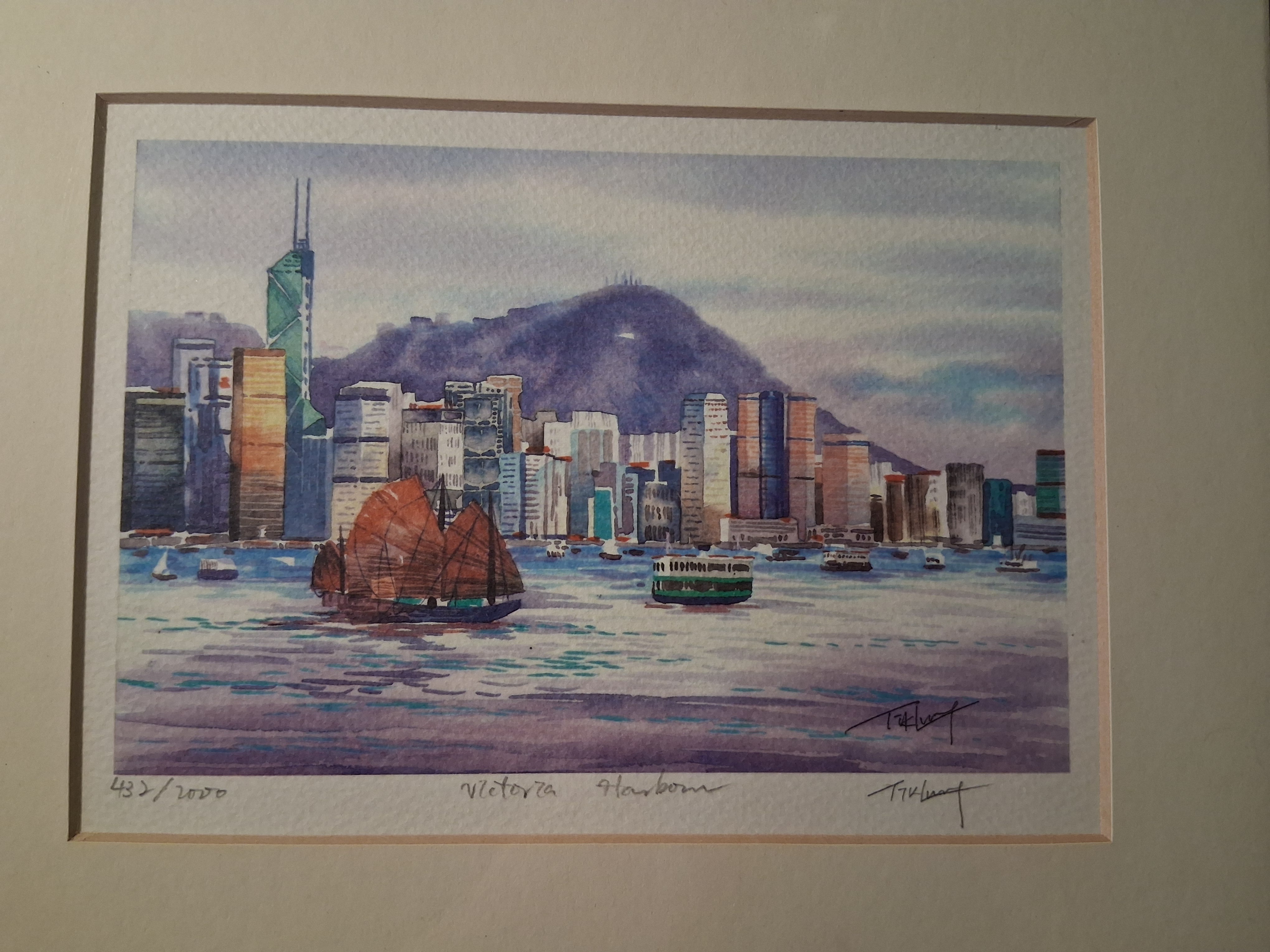 Watercolor Painting: "Victoria Harbour". Made by T. Hurst. Dating to 2000. Materials: Watercolor on paper. Estimated value: $150 – $300. Condition: Excellent. The market for contemporary watercolor paintings is stable with moderate demand.
