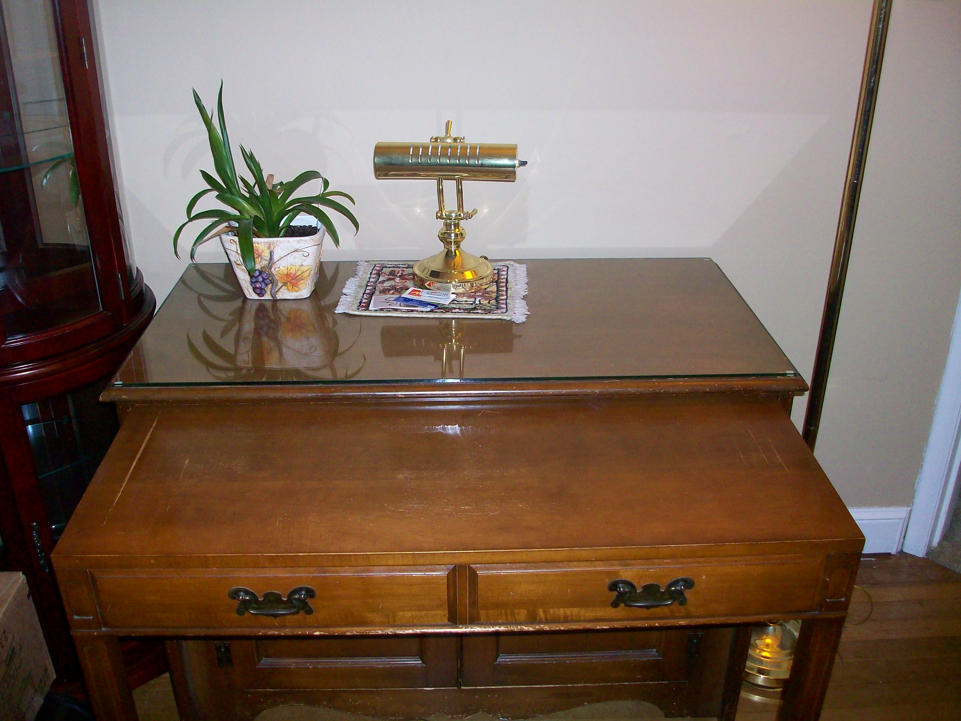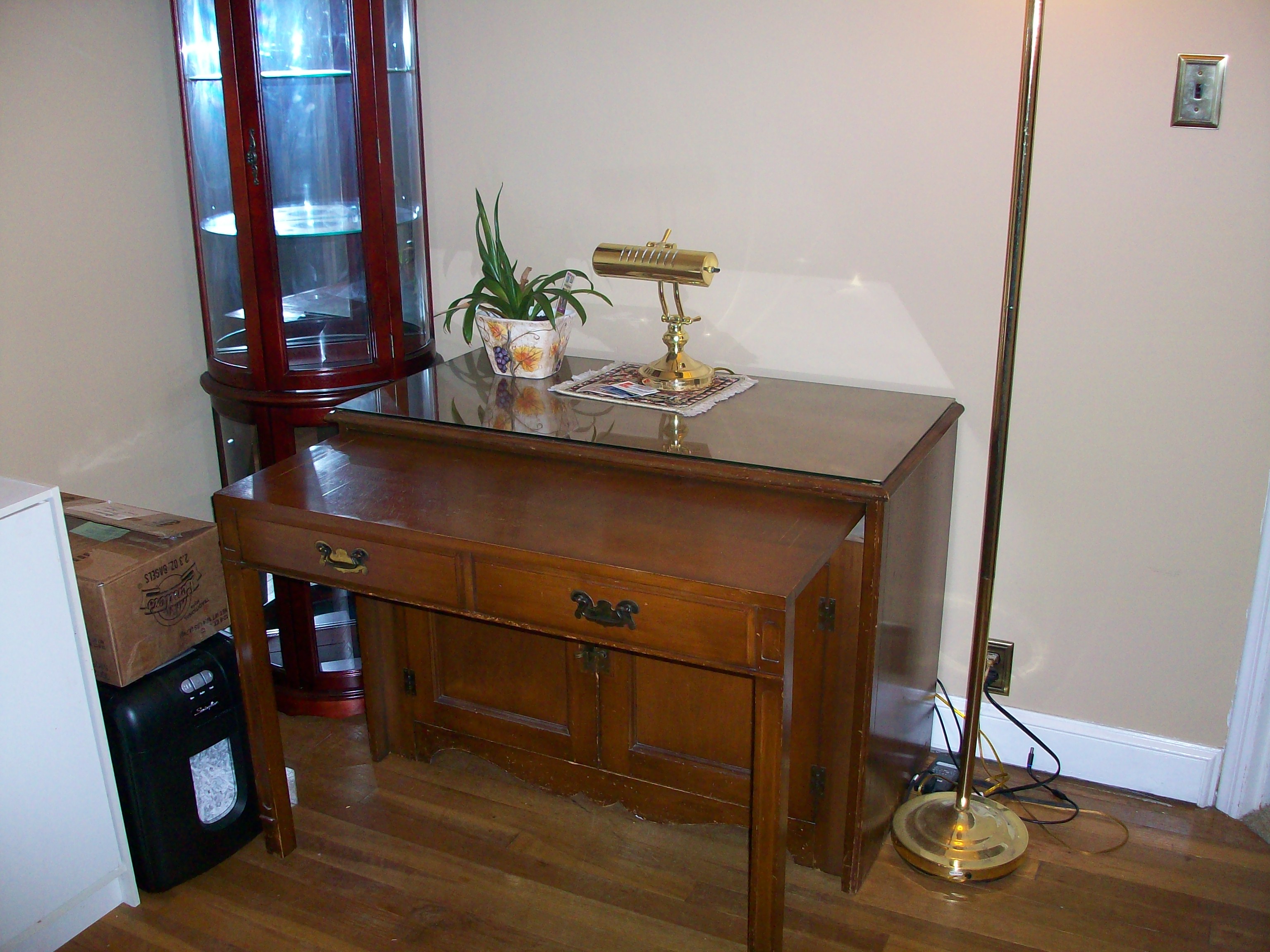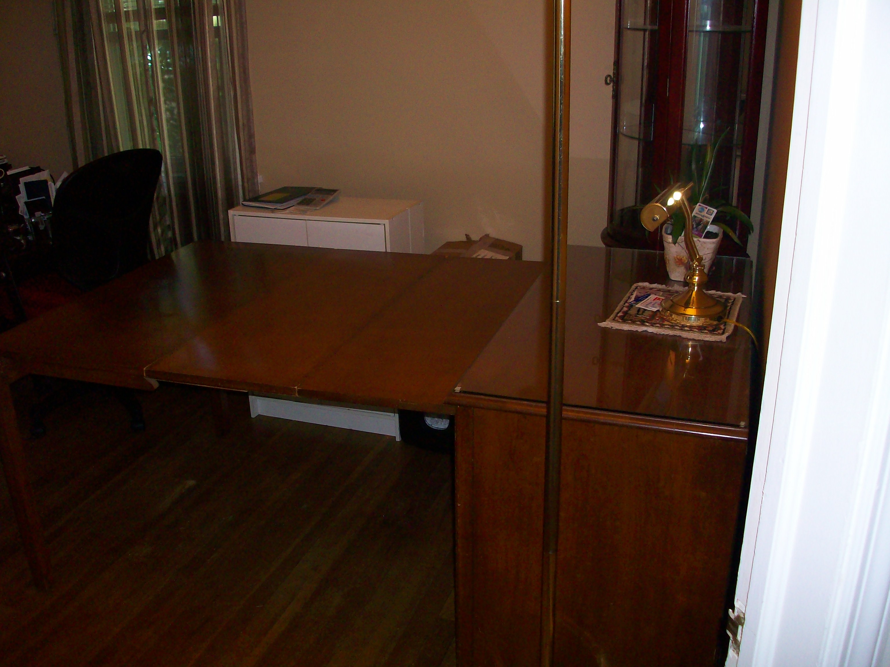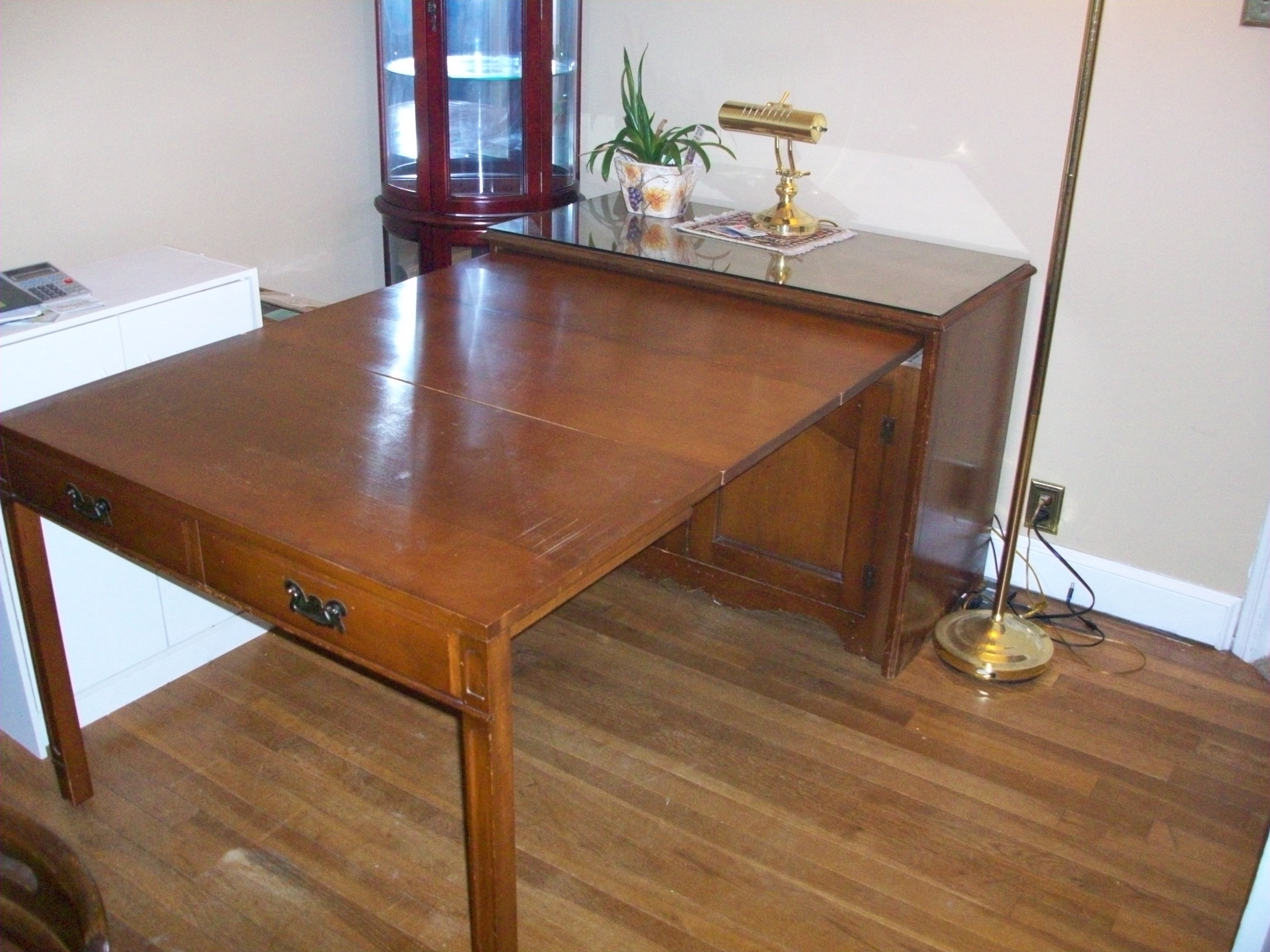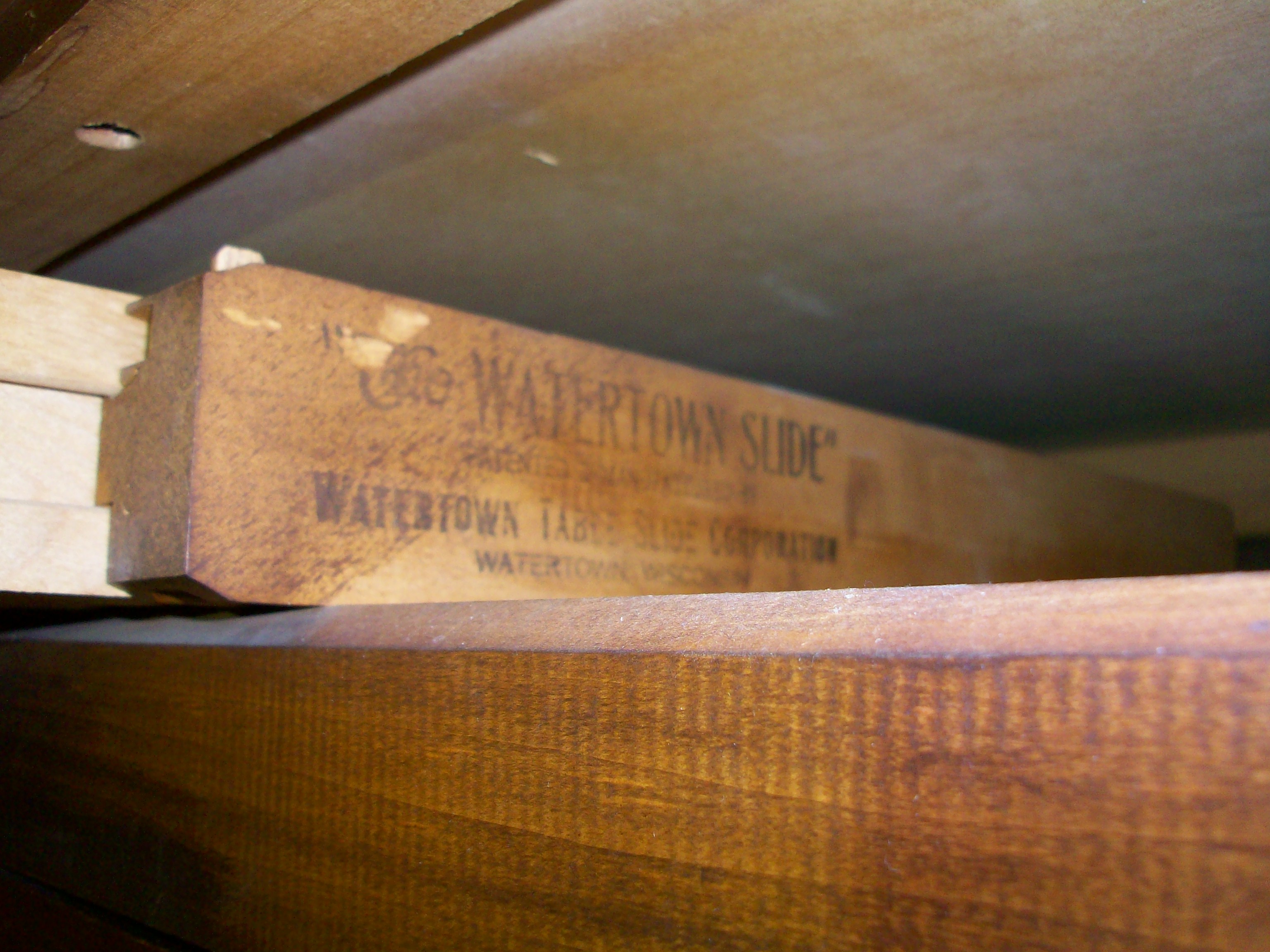 Watertown Slide Table with 4 leaves. The color is Mahogany. Manufacturered in Saginaw, Wisconsin.