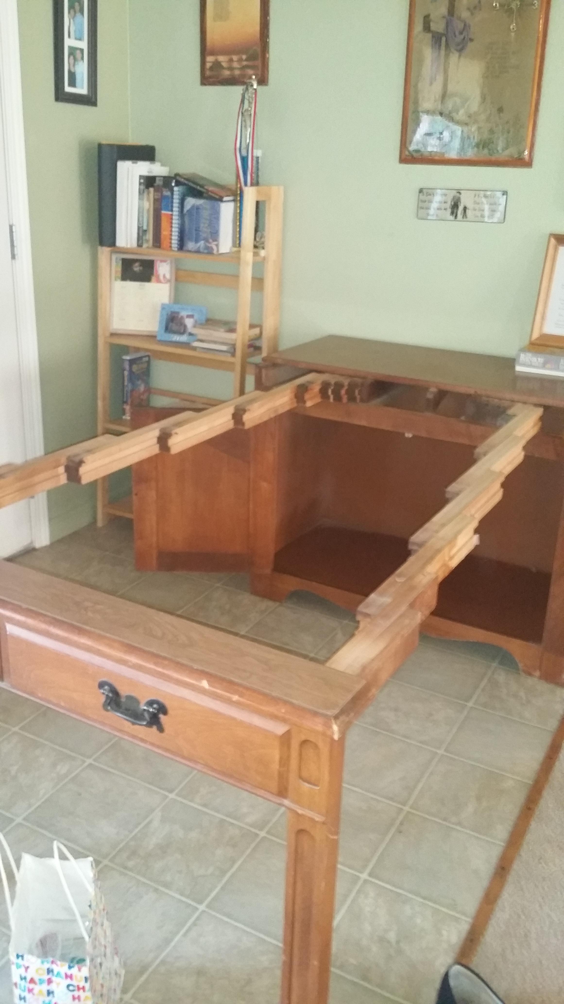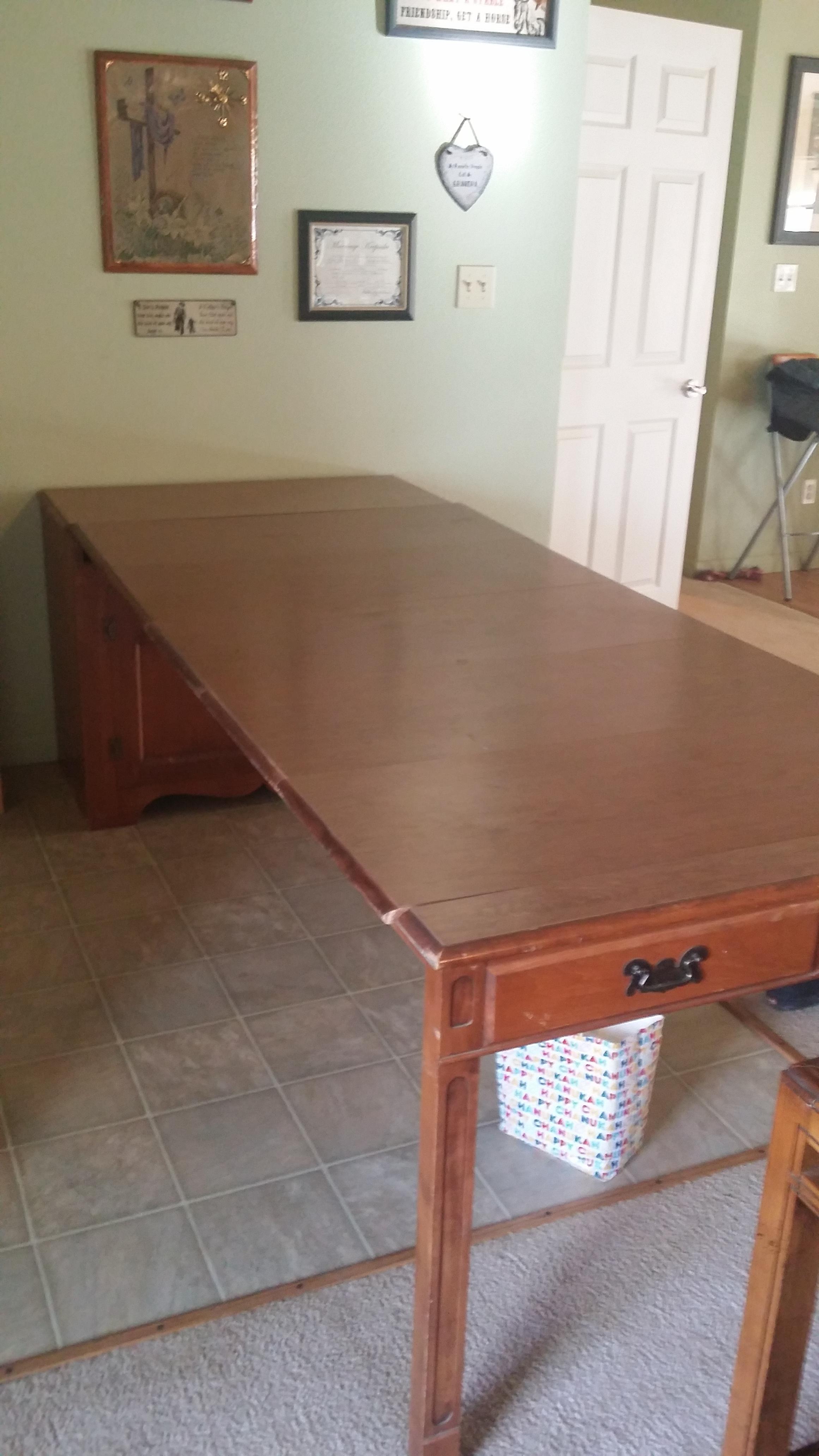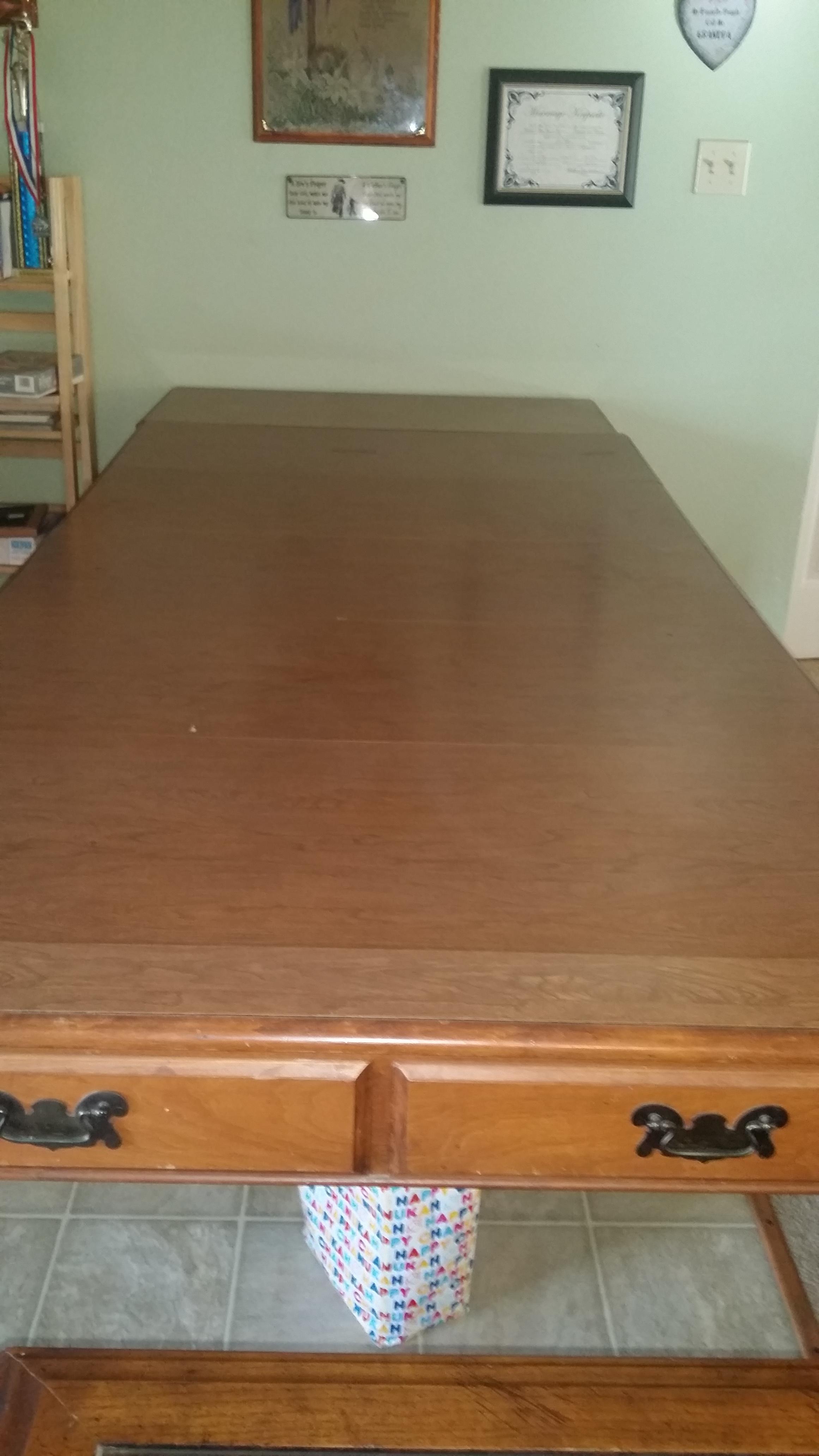Watertown slide table with 5 removable wood leaves.