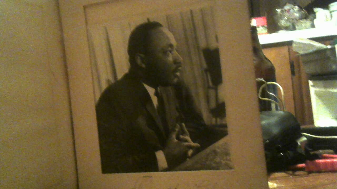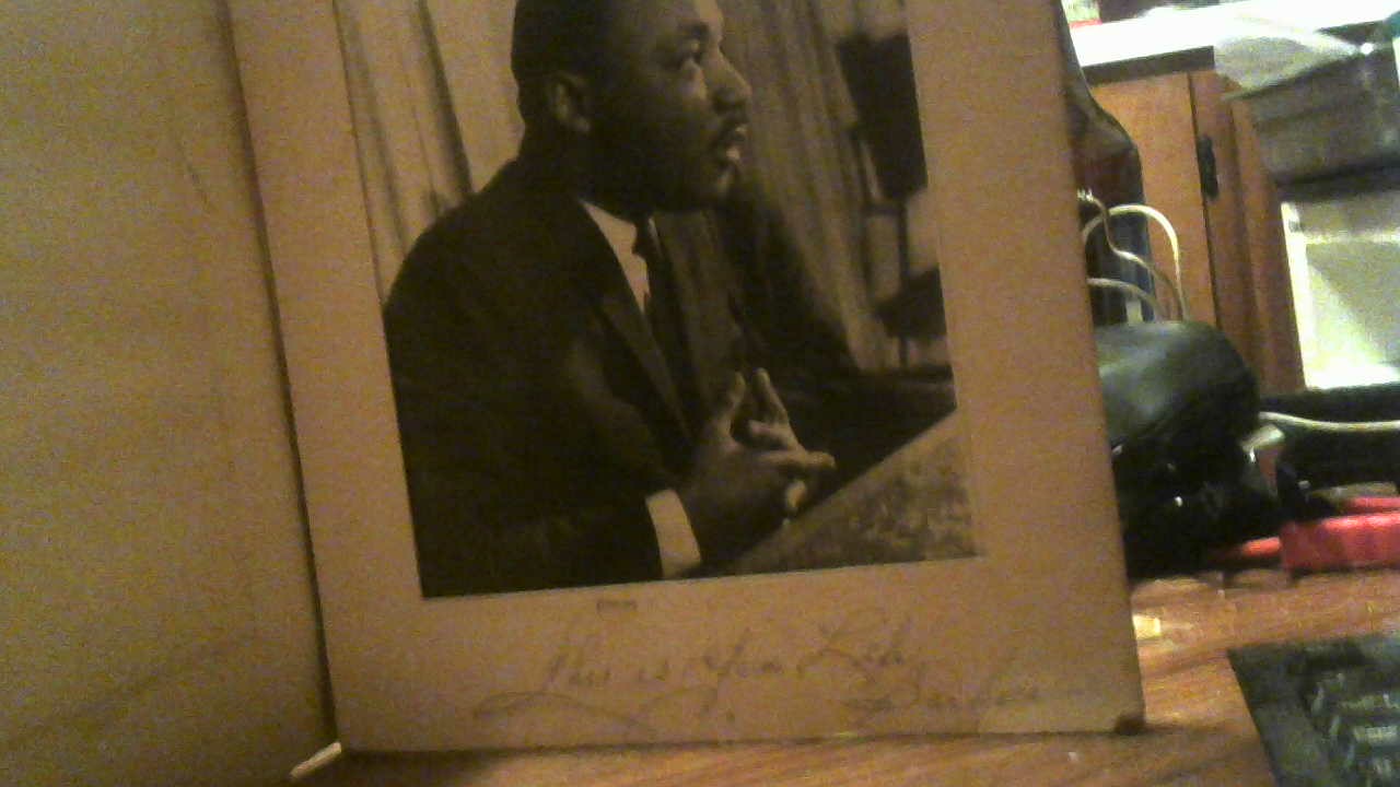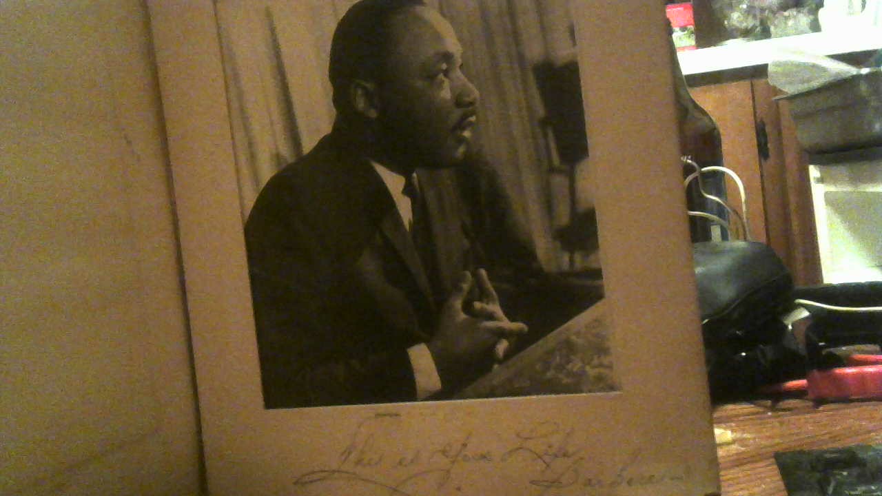 Description sighned photo with pic of MLK with barbera autograph