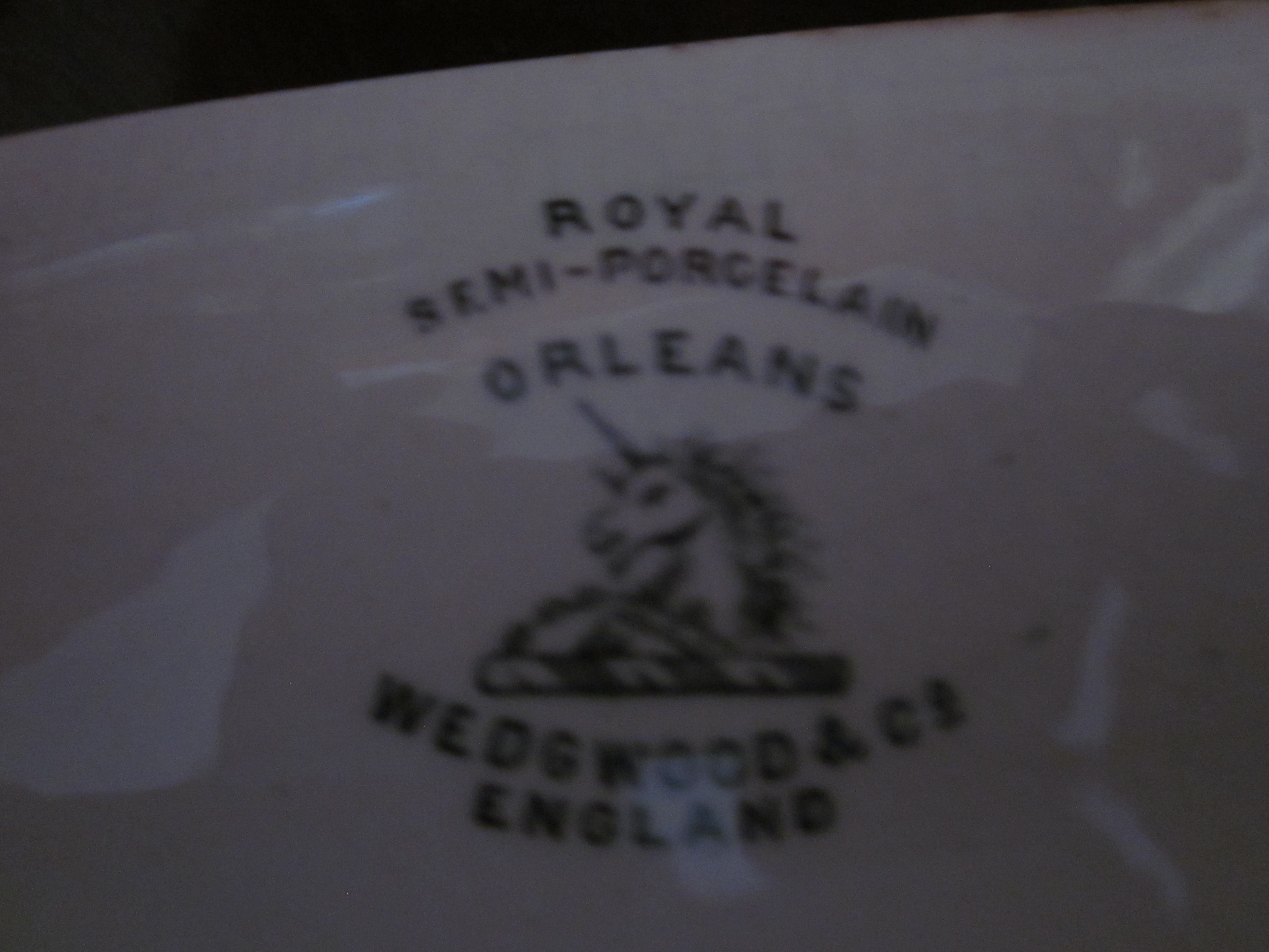 I found this Wedgwood & Co. platter in an old laundry basket. It must have been sitting in the woman's basement for quite some time. It is a rectangular platter with scalloped edges. The mark was used from 1908-1936. We finally found the pattern on replacements.com. It is Orleans. They do not have any available though. I would just like to know what it is worth in its current condition.